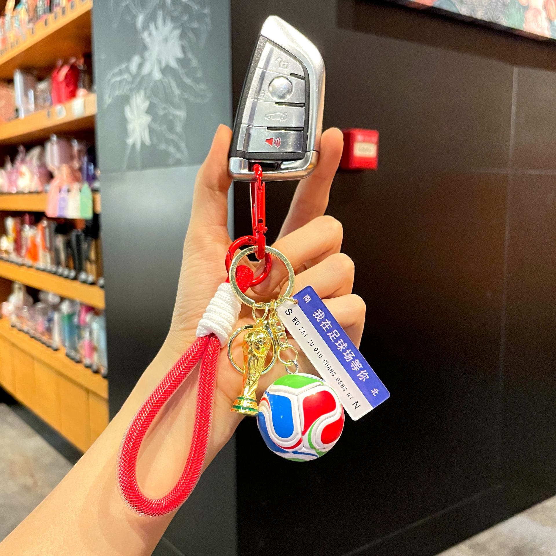 w5 world cup soccer ball + trophy + green miu lanyard