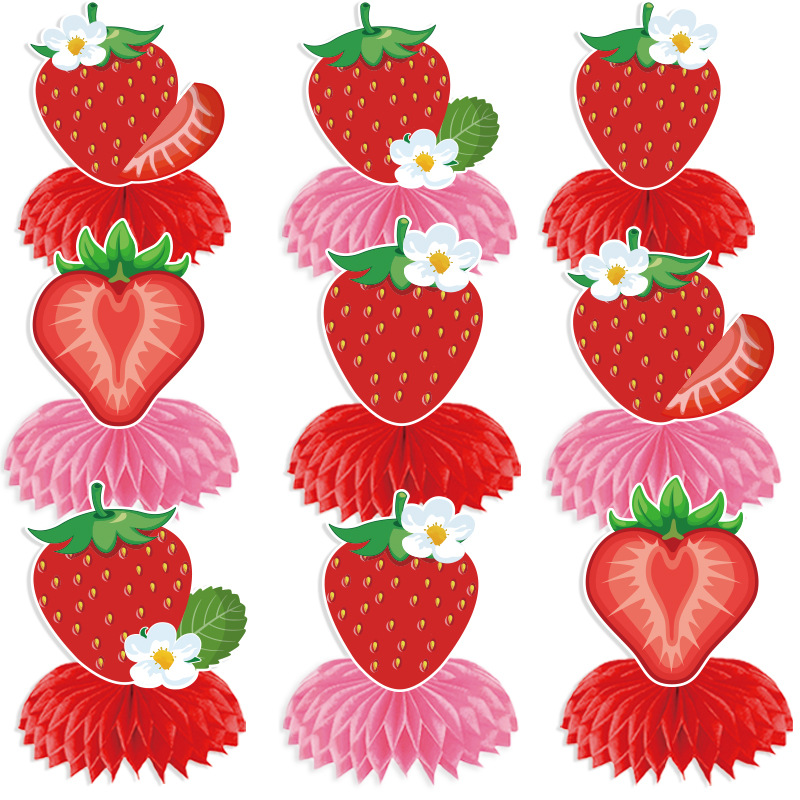 strawberry birthday alphabet hanging flag + strawberry honeycomb (a complete set)
