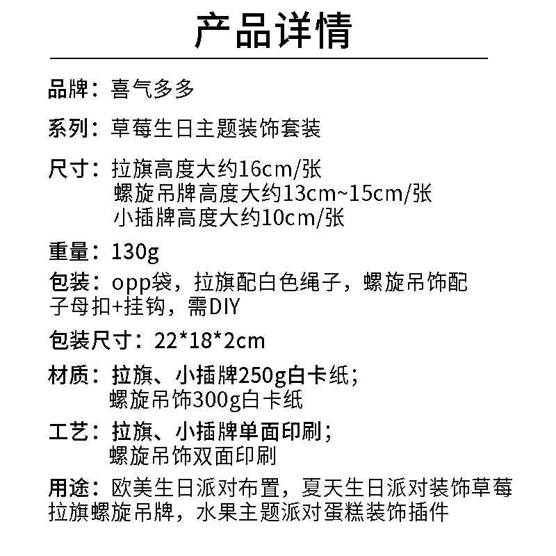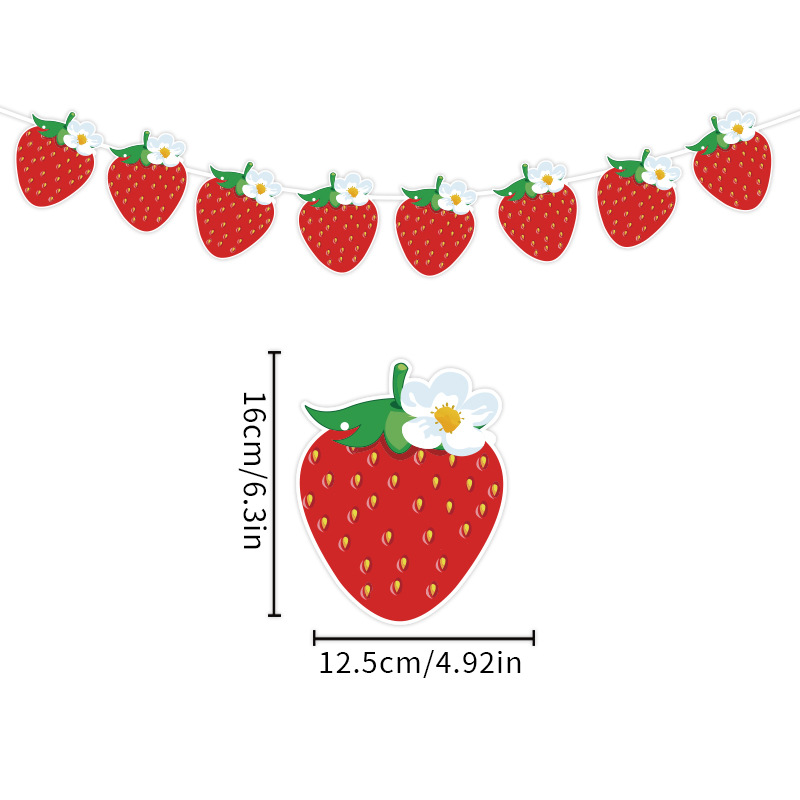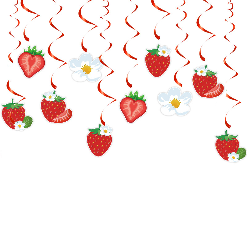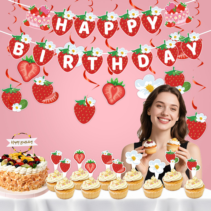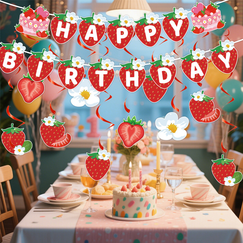 Birthday Party Decor Kit Birthday Streamers Flag Spiral Badge Cake Accessories Summer Fruit Strawberry Theme