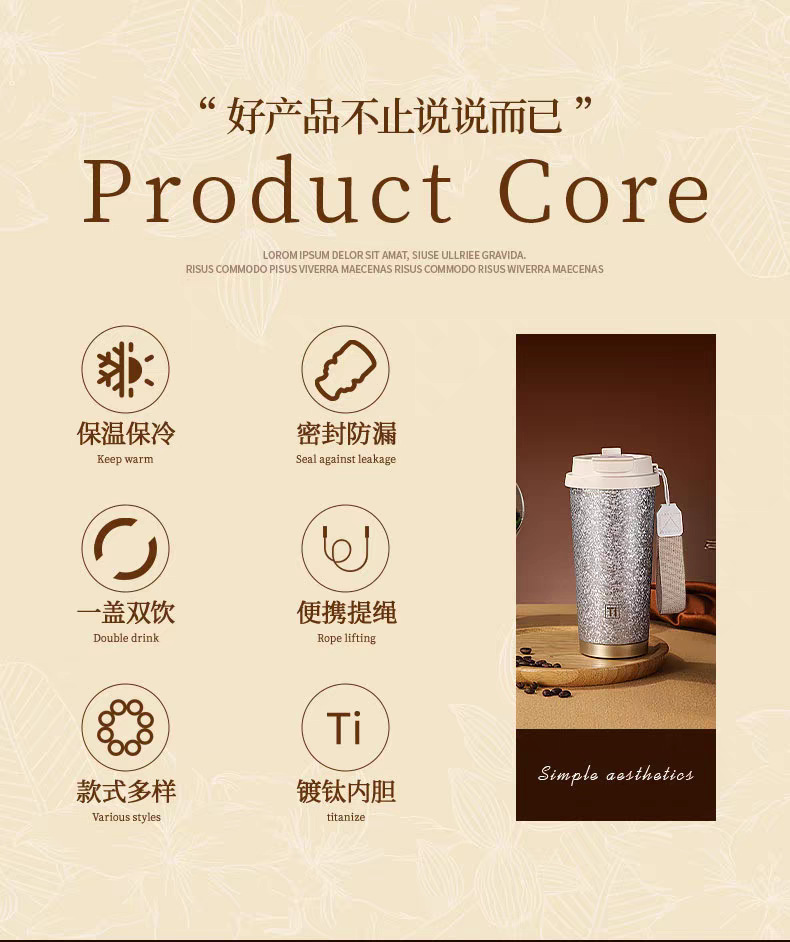 style: with rope handle, large capacity, cup, tumbler