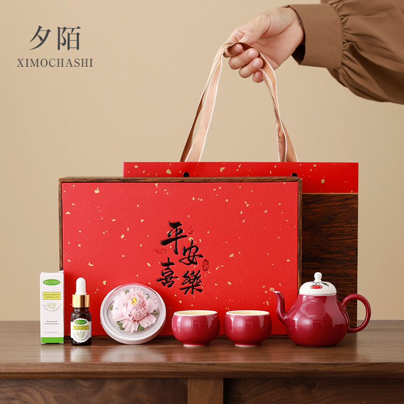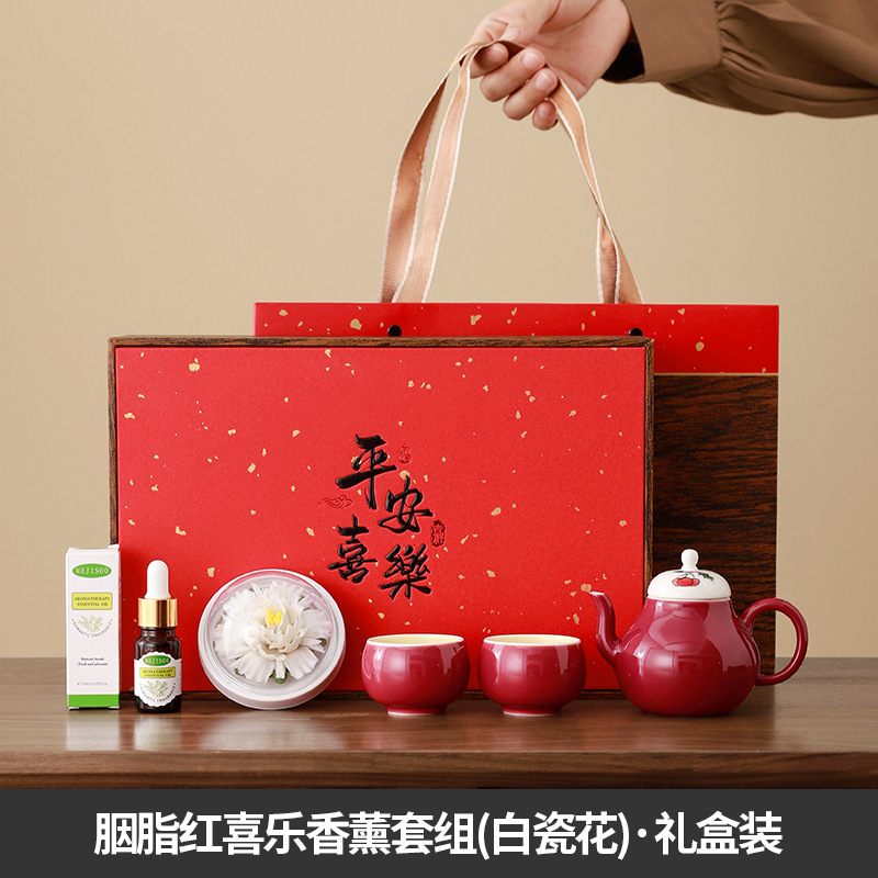 carmine/xile one pot two cups aromatherapy sets (white porcelain flower) + gift box