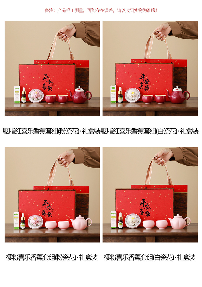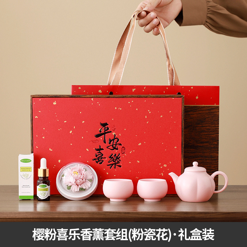 cherry pink/joyful one pot two cups aromatherapy sets (pink porcelain flower) + gift box