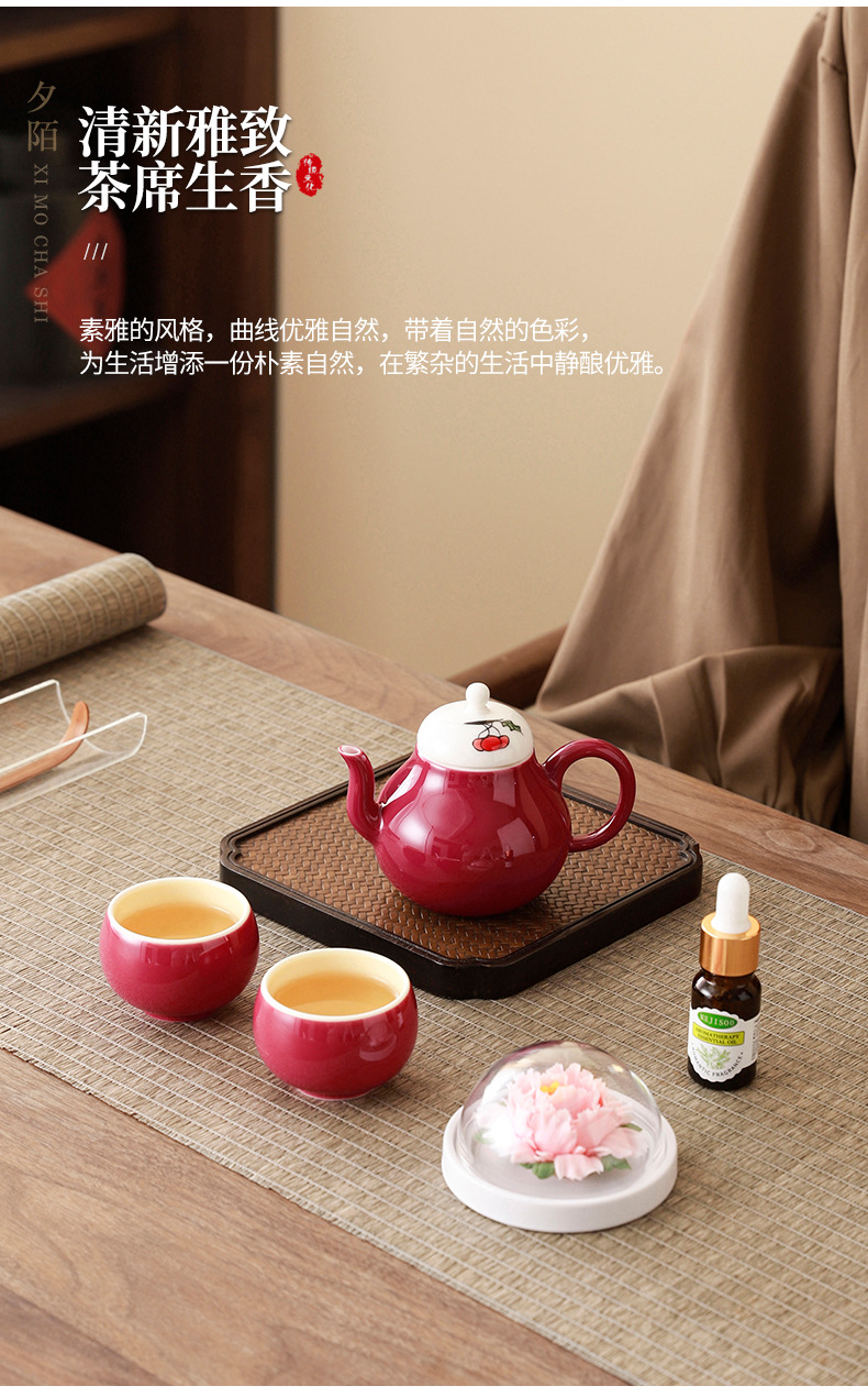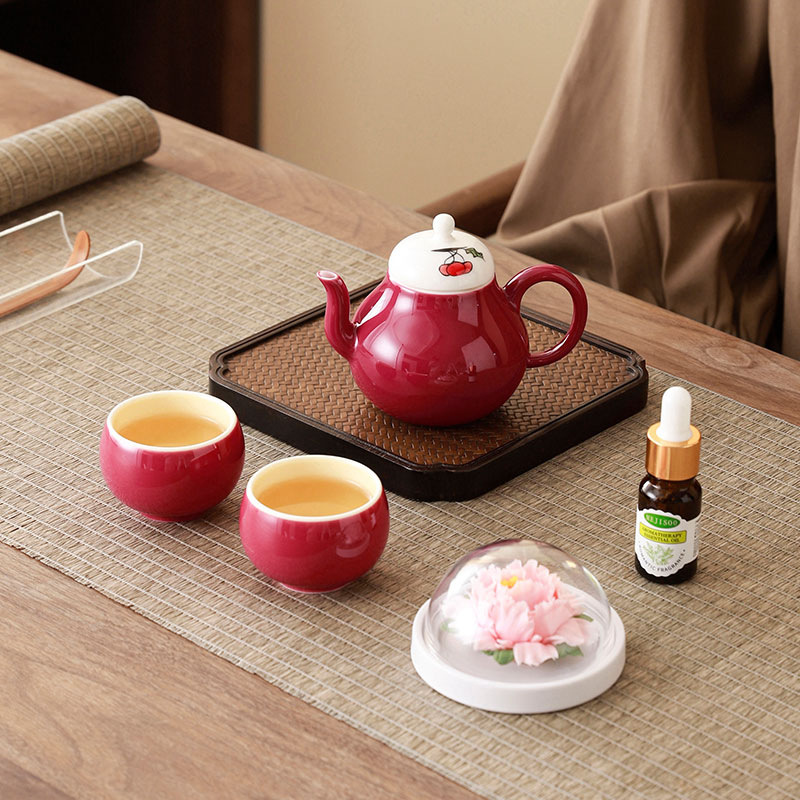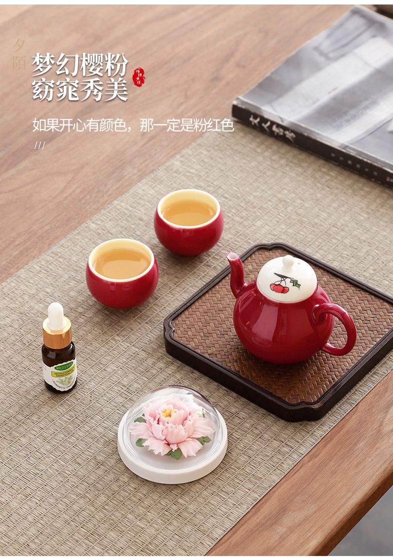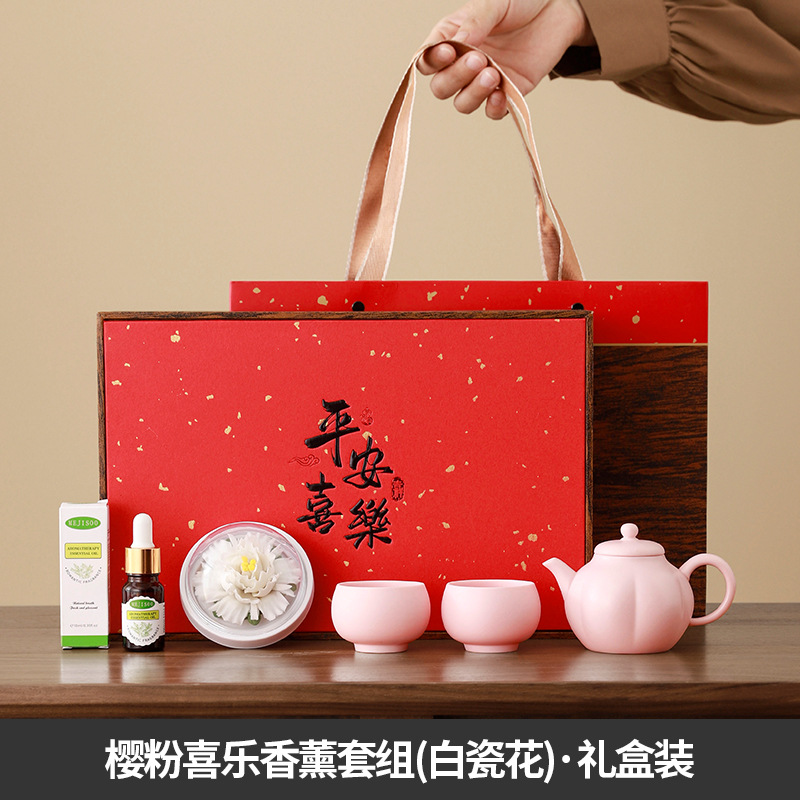 cherry pink/xile one pot two cups aromatherapy sets (white porcelain flower) + gift box
