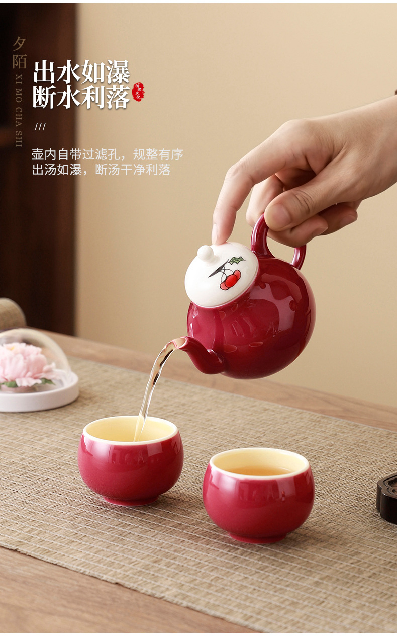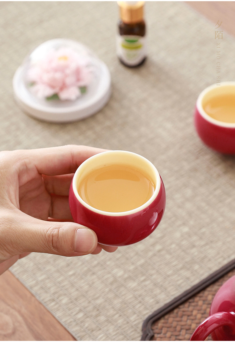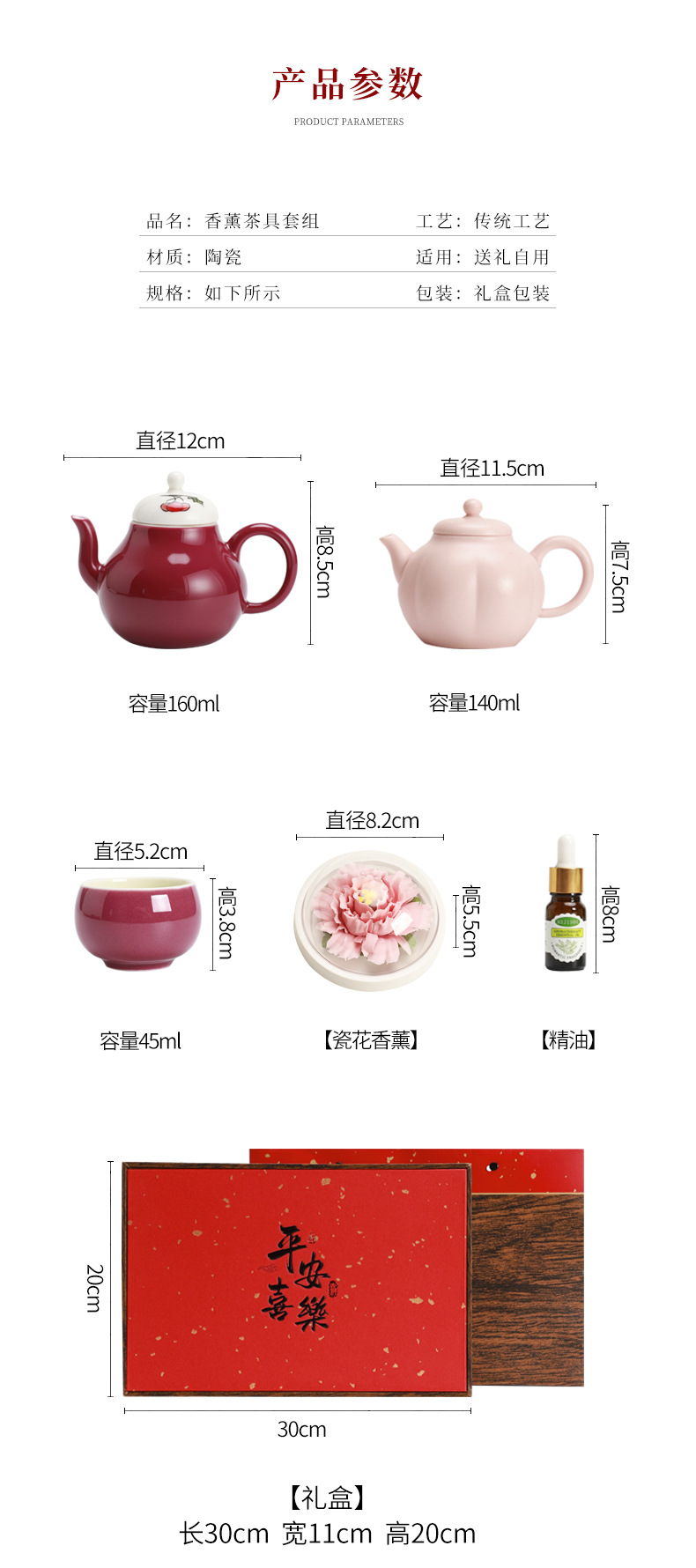 cherry pink/xile one pot two cups aromatherapy sets (white porcelain flower) + gift box
