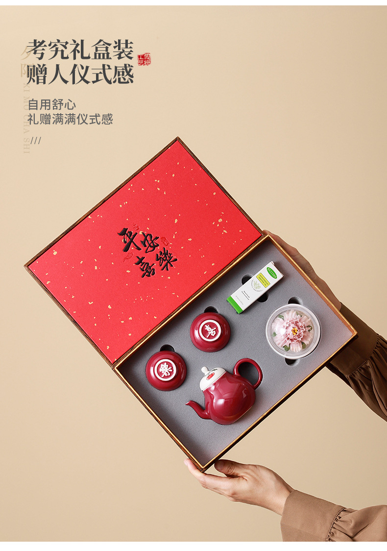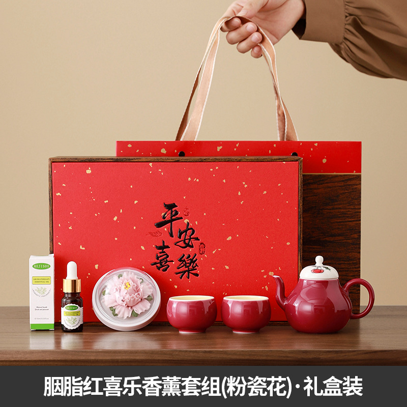 carmine/xile one pot two cups aromatherapy sets (pink porcelain flower) + gift box