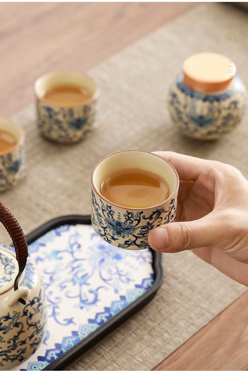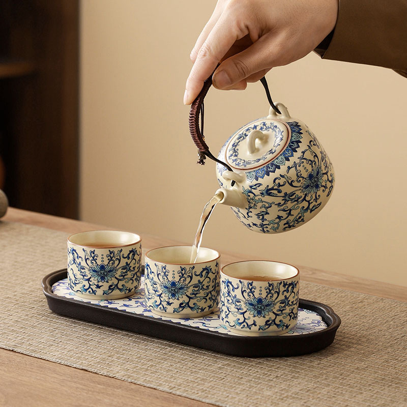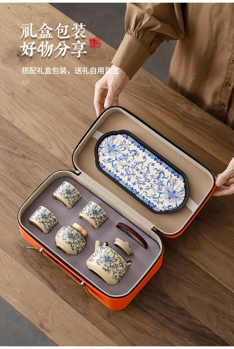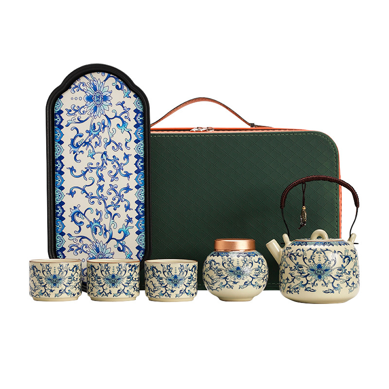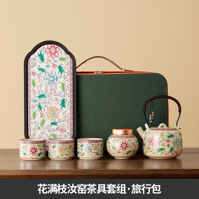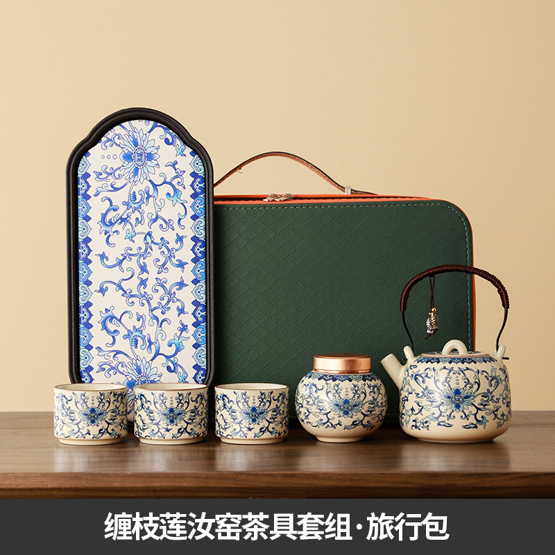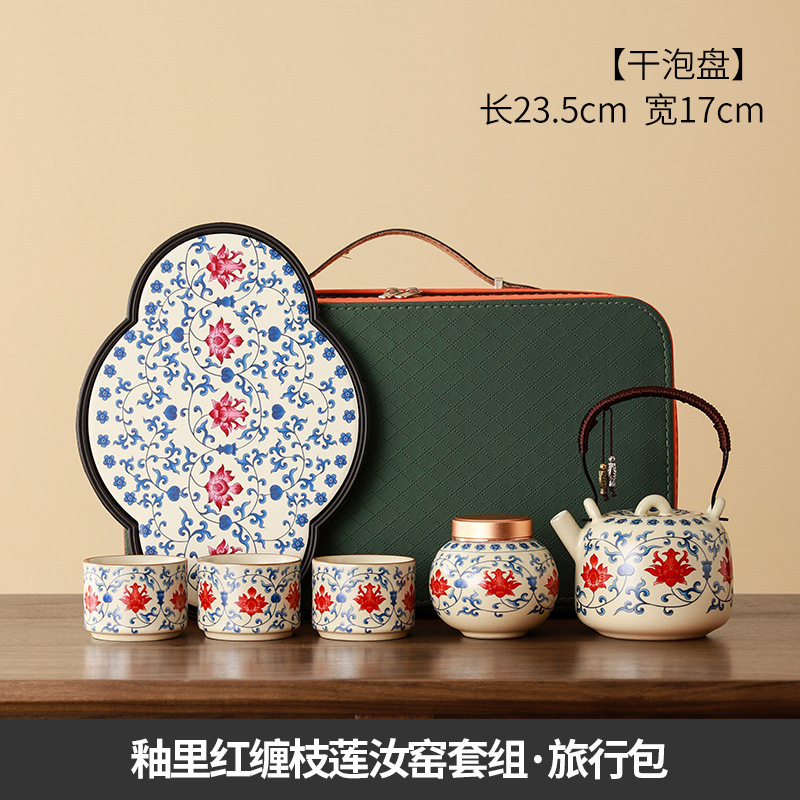 interlock branch lotus ru ware tea set + travel bag