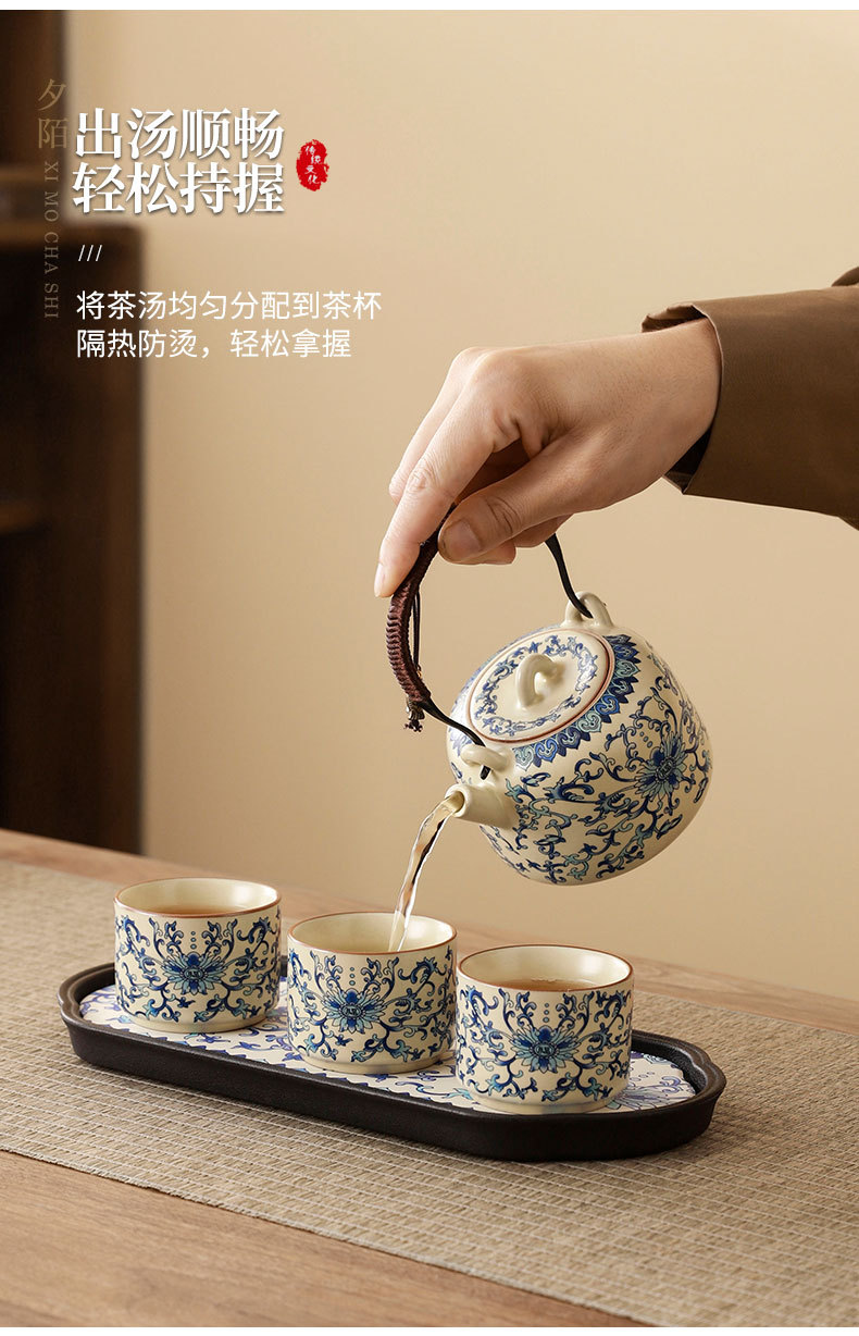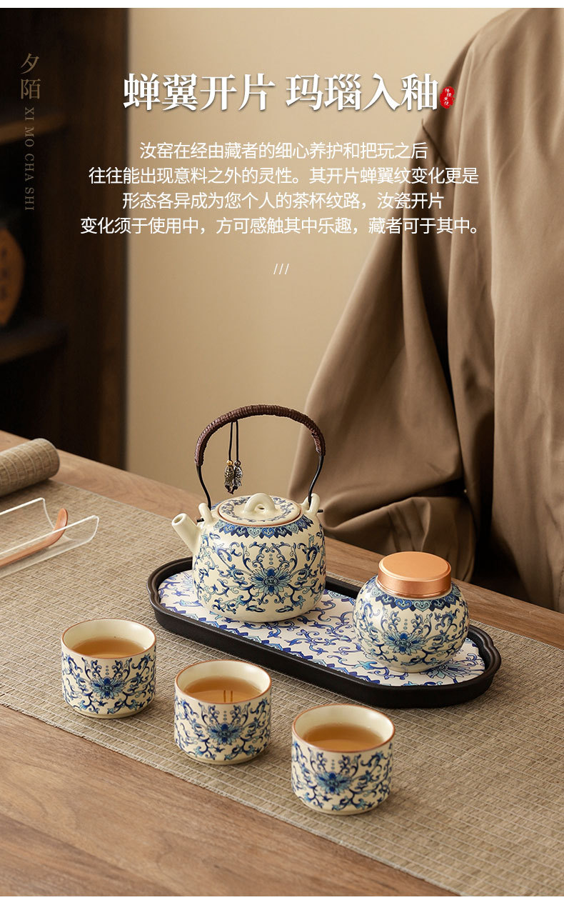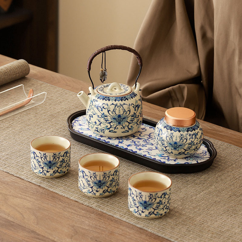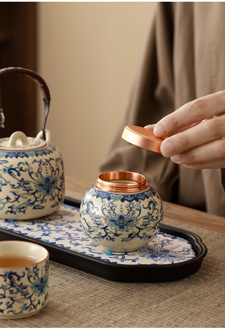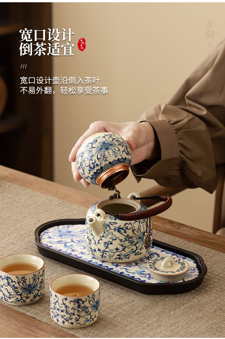 interlock branch lotus ru ware tea set + travel bag