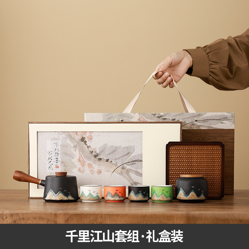 thousand-li landscape sets + heavy bamboo square plate [gift box]]