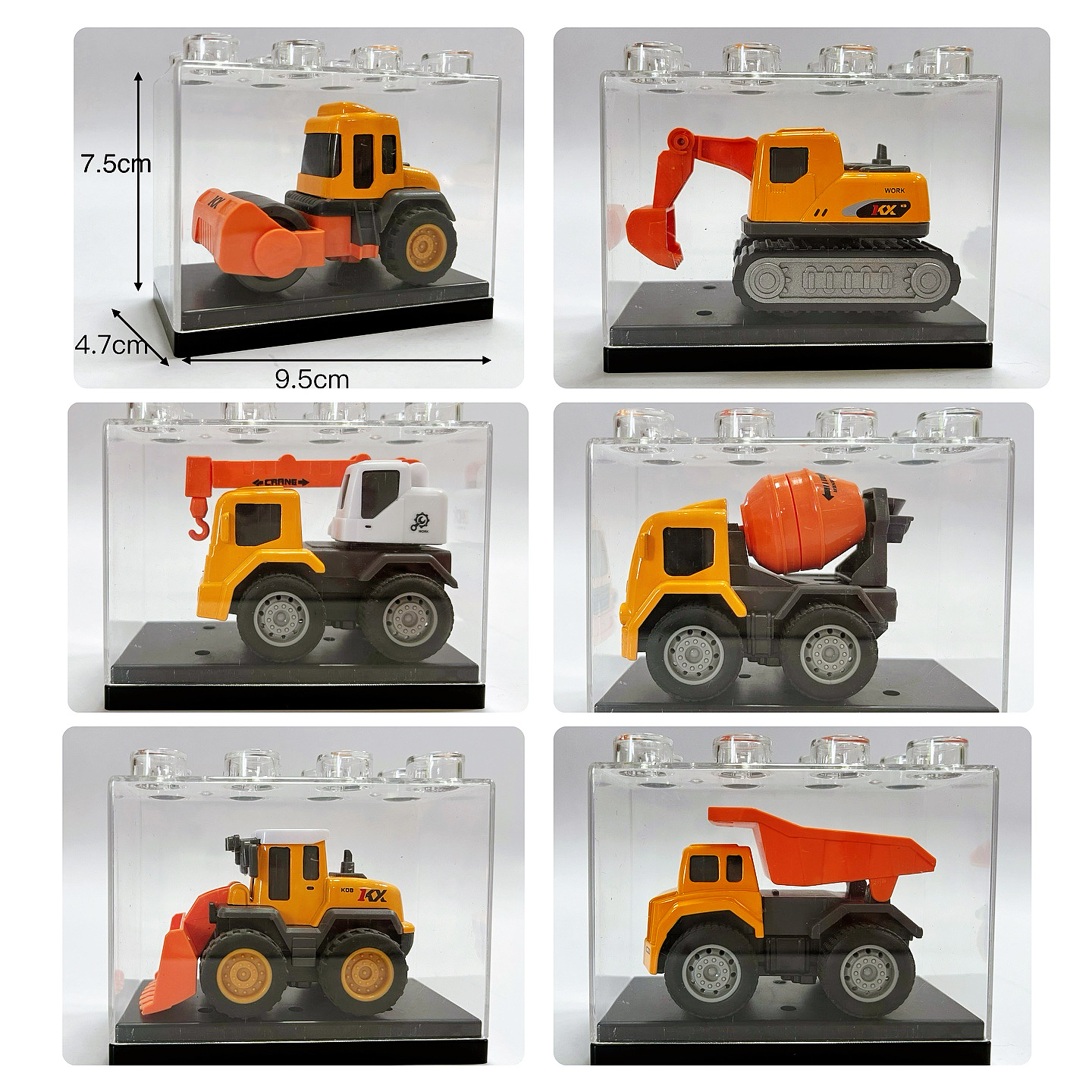 6 types of engineering vehicles + transparent box packages per piece (random delivery at a single price/6 pieces for a whole set)