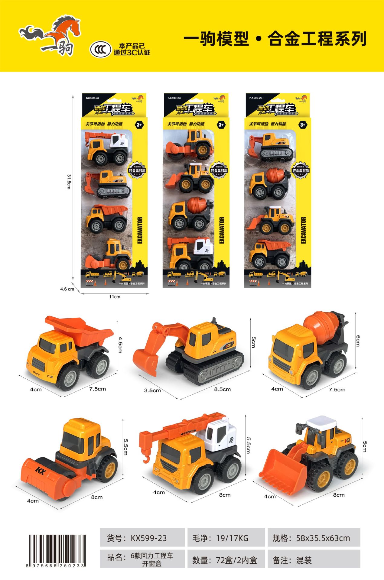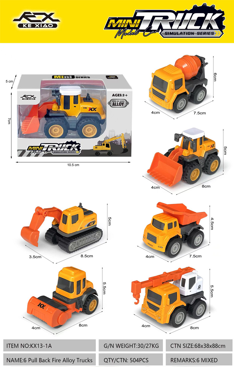 6 engineering vehicle models (single-item price, random assortment; buy 6 and receive a full set)