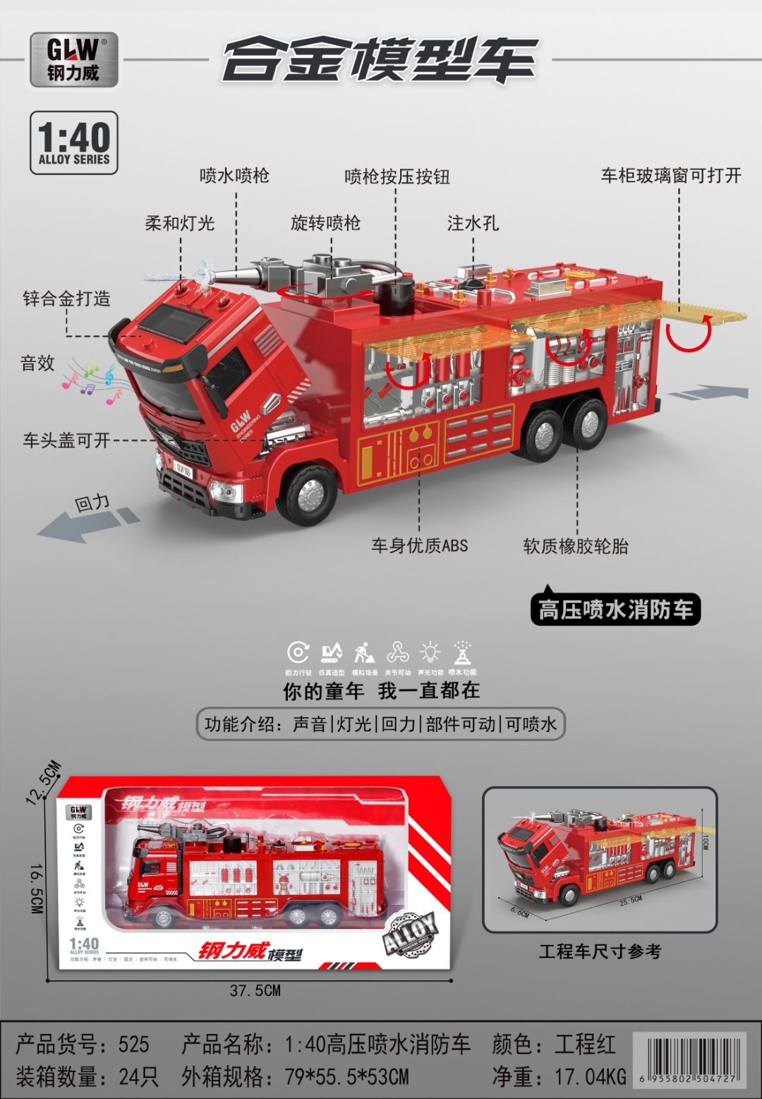 828 gangliwei alloy fire truck [price per unit] 4 styles, shipped randomly