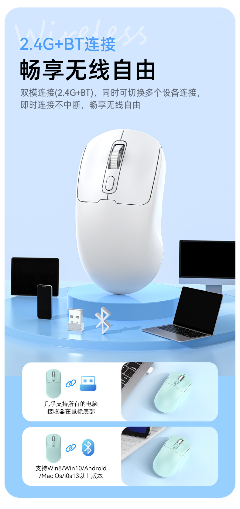 morandi dual-mode 2.4g + bluetooth ice white
