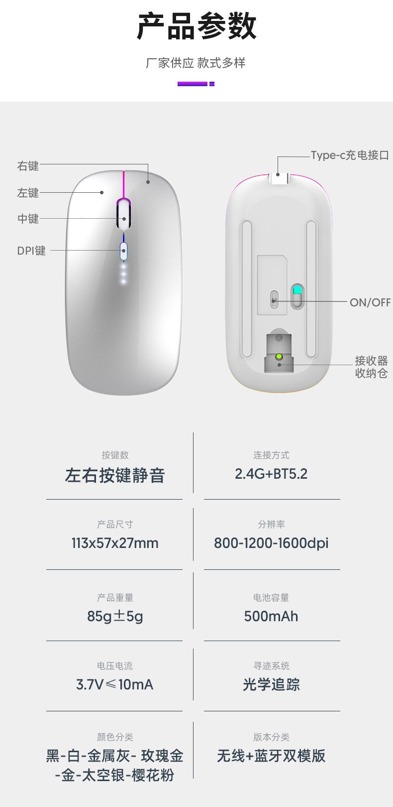 2.4g+bluetooth dual-mode + battery level display (silver)