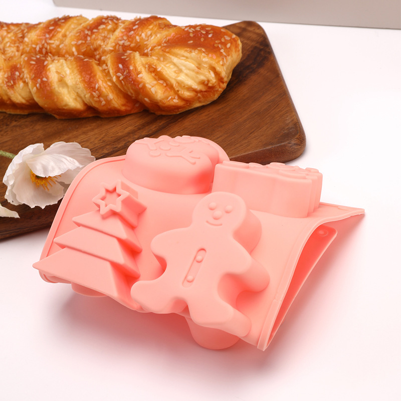 six-hole christmas sled elk silicone mold cake mold handmade soap mold baking mold kitchen supplies