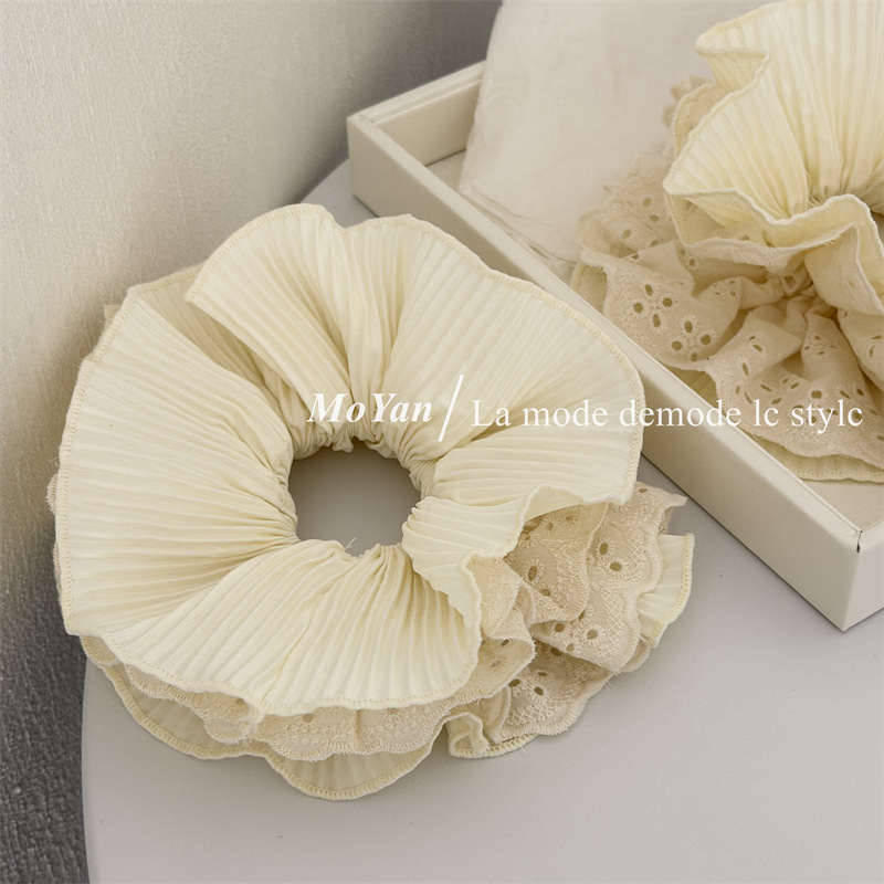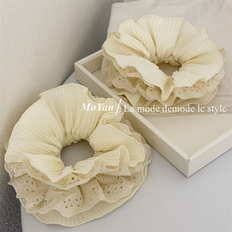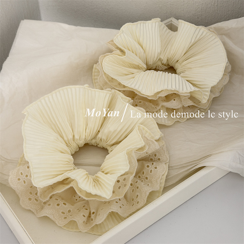 korean style ab surface double-piece lazy pleated fabric large intestine hair band high-grade hair rope internet celebrity ponytail hair string headdress flower
