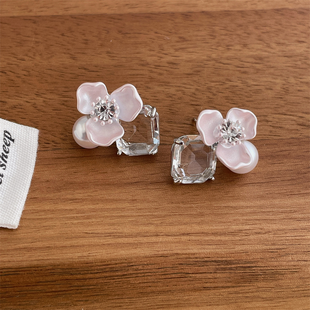 pink flower earrings r171