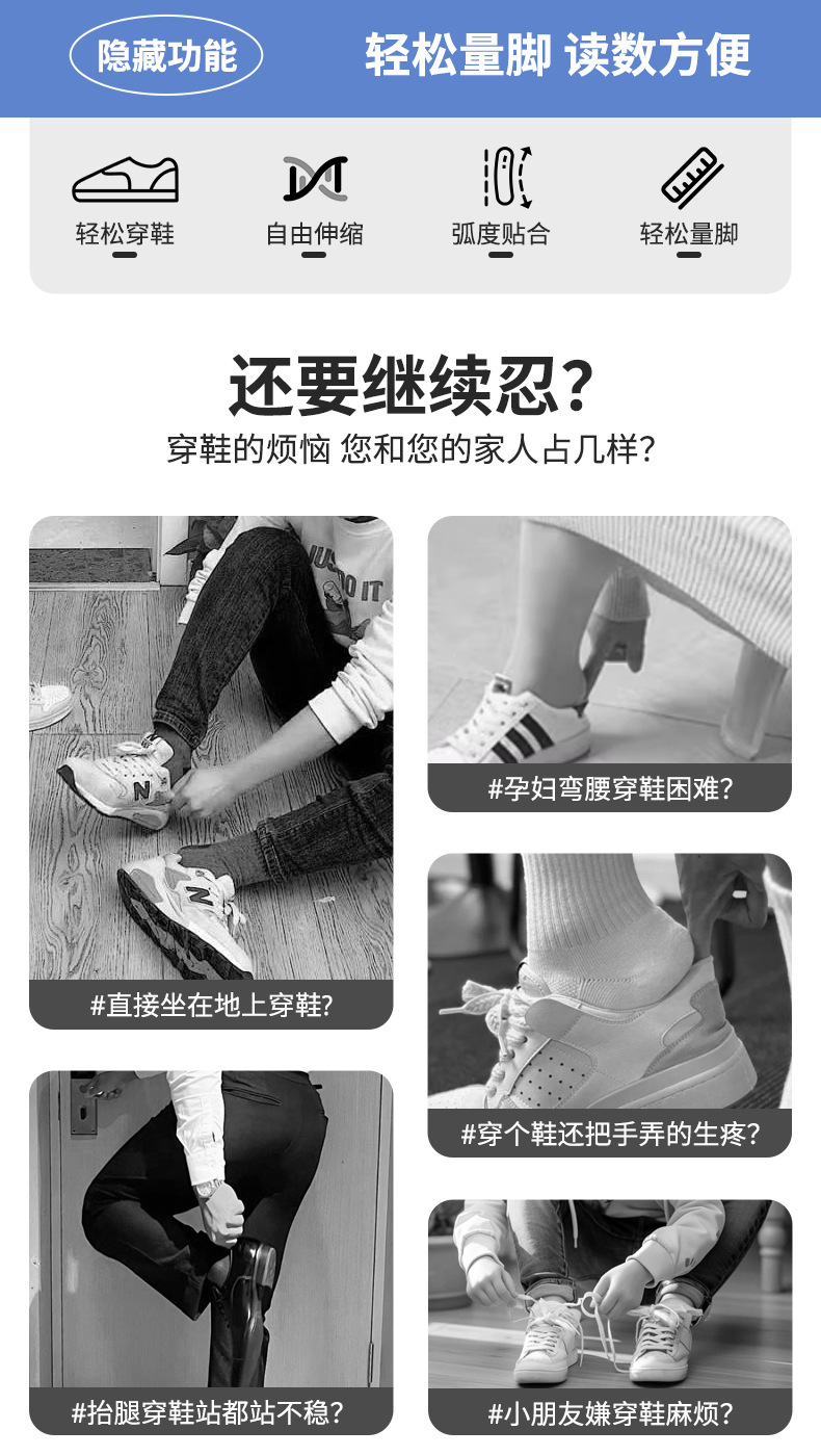 retractable shoehorn 2-in-1 long handle household high-end shoe puller children's foot guage fabulous shoe wearing tool for pregnant women and elderly