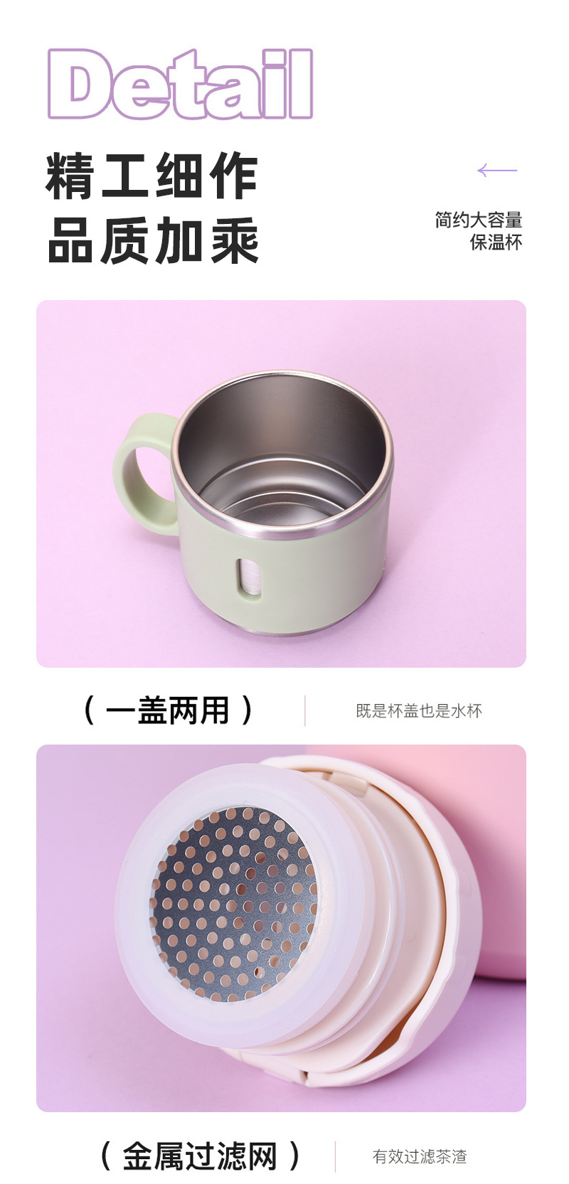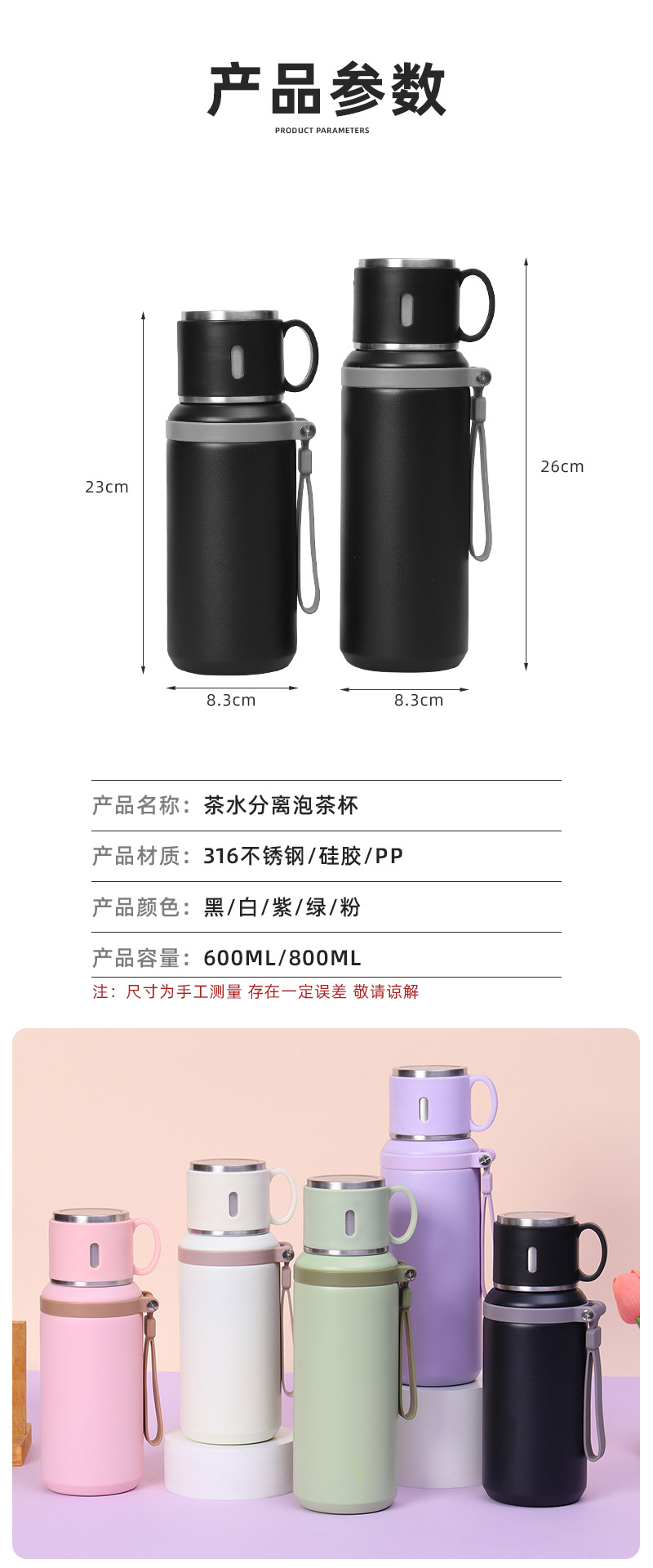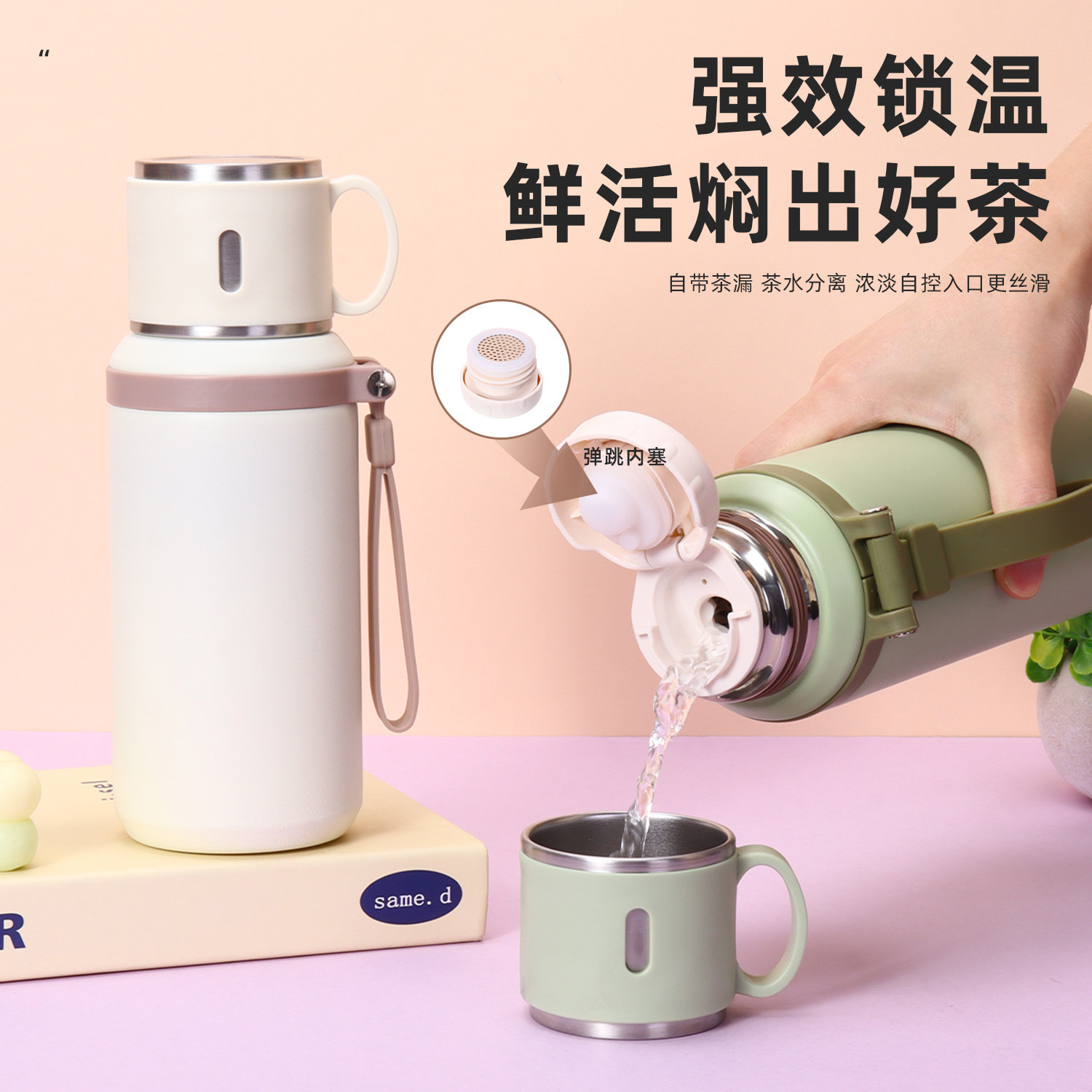 style: bullet, with rope handle, large capacity, tumbler, with tea strainer