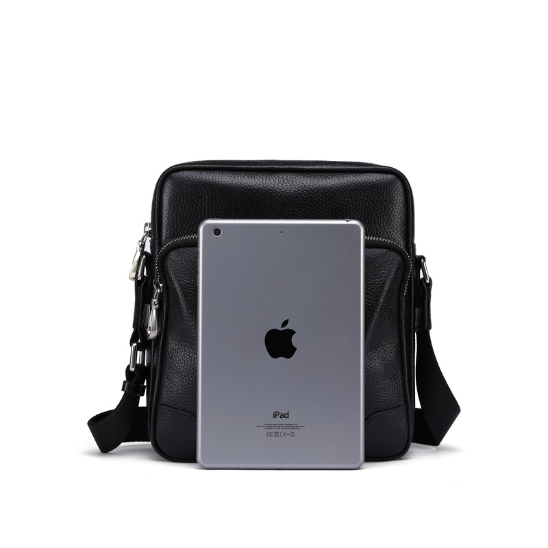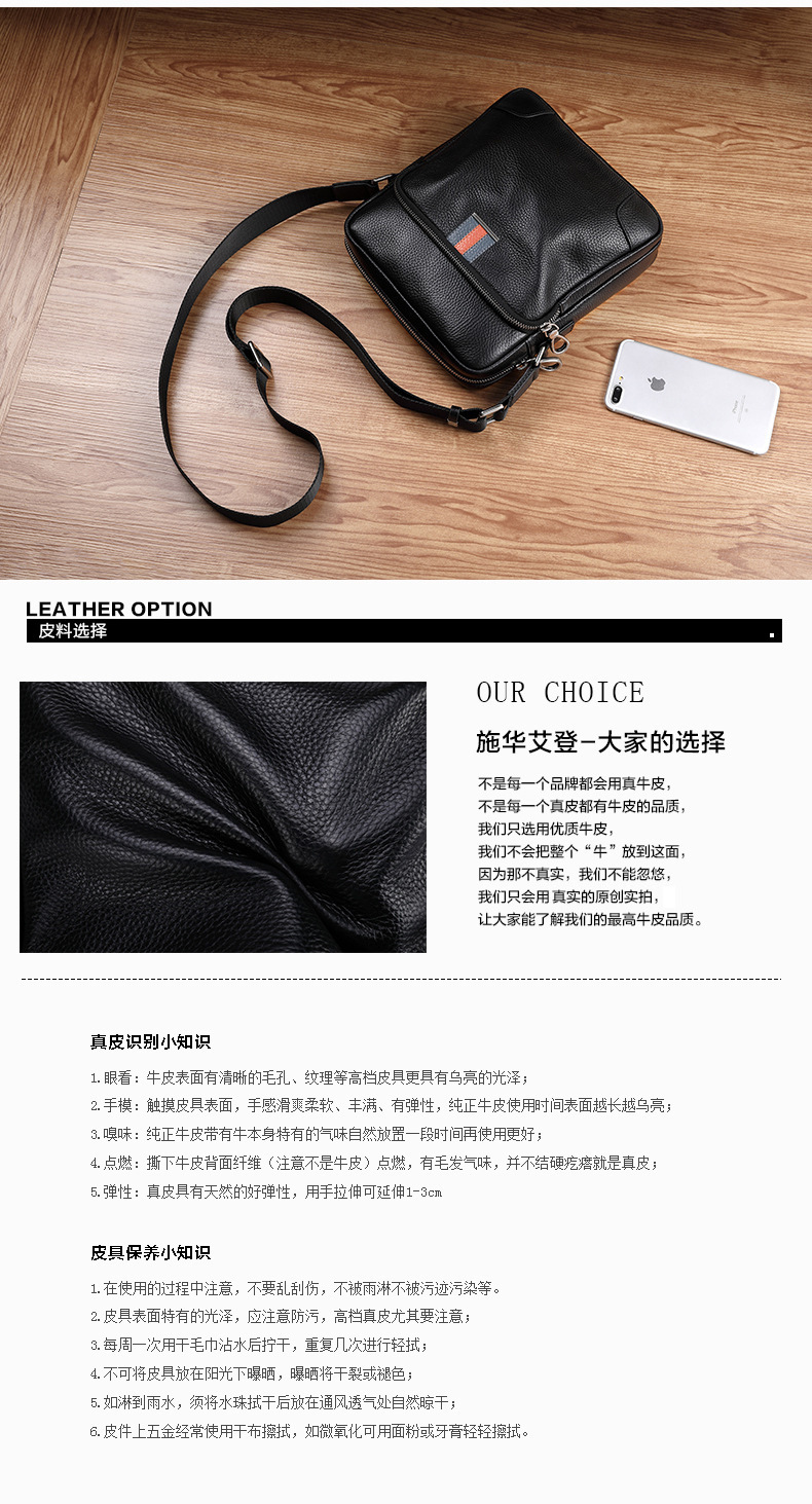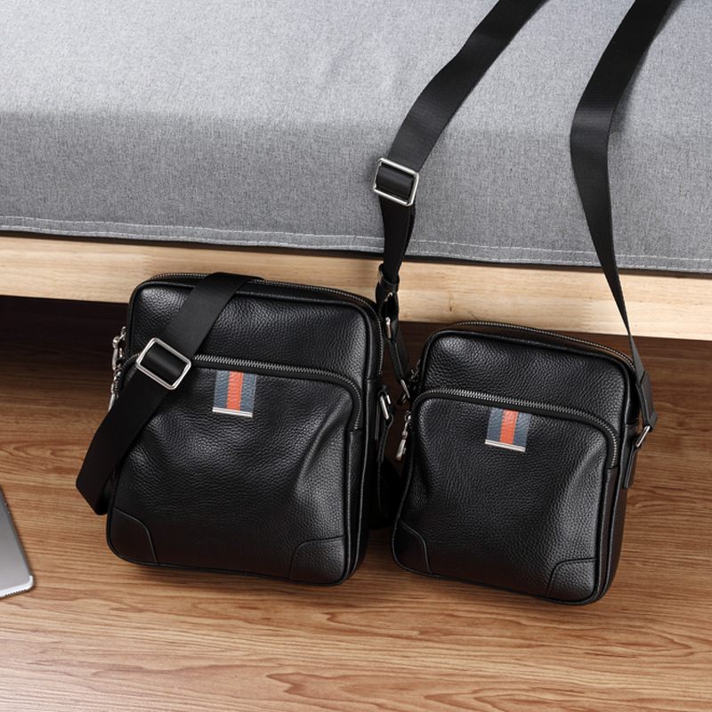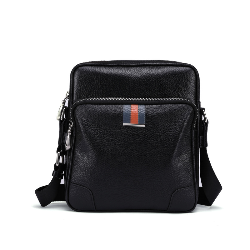 single shoulder bag men's leather multi-functional vertical messenger bag first layer cowhide large capacity men's bag fashionable simple color collision design