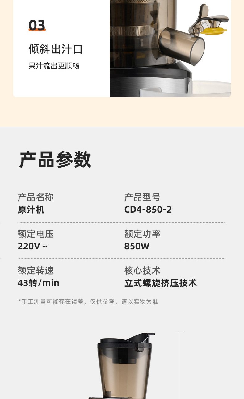 capacity of pulp residue box: less than 500ml (including 500ml)