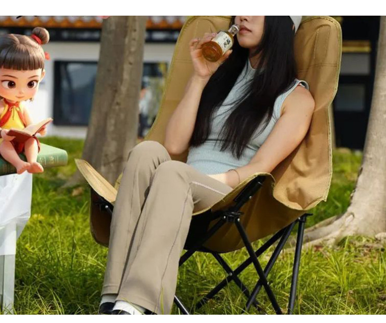low-back khaki color [double layer cushion + carbon steel bracket] load-bearing 150kg