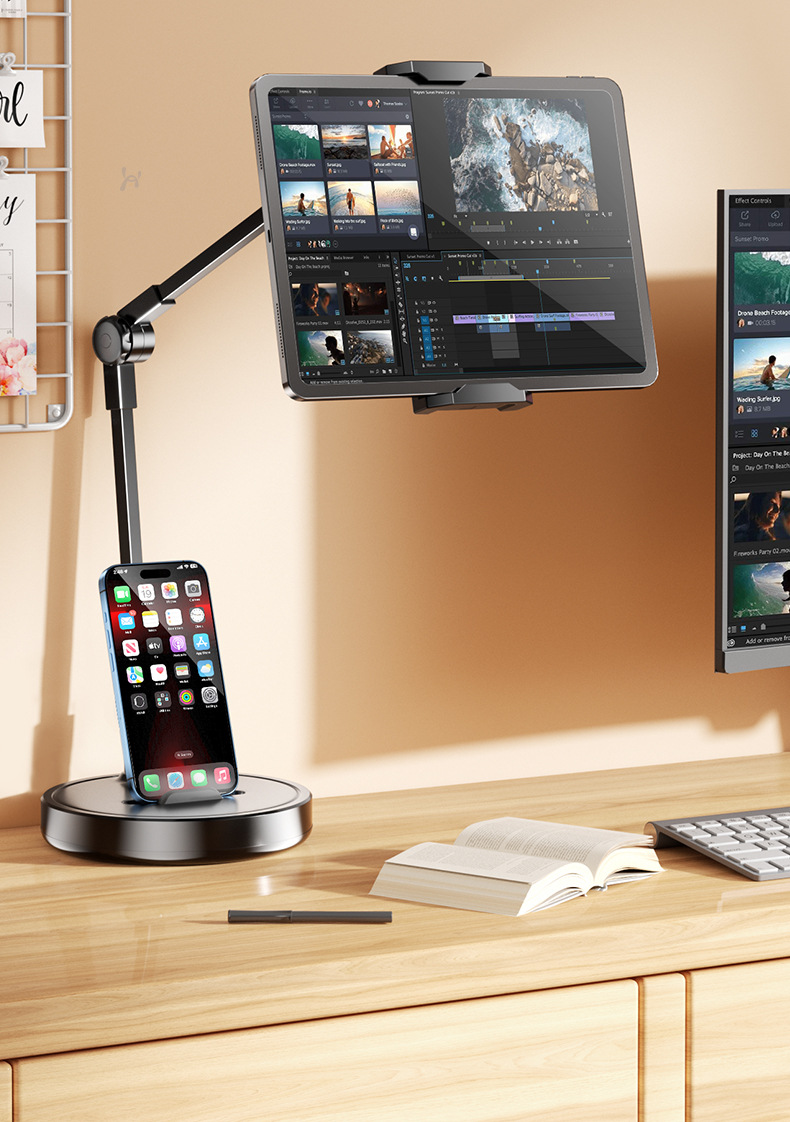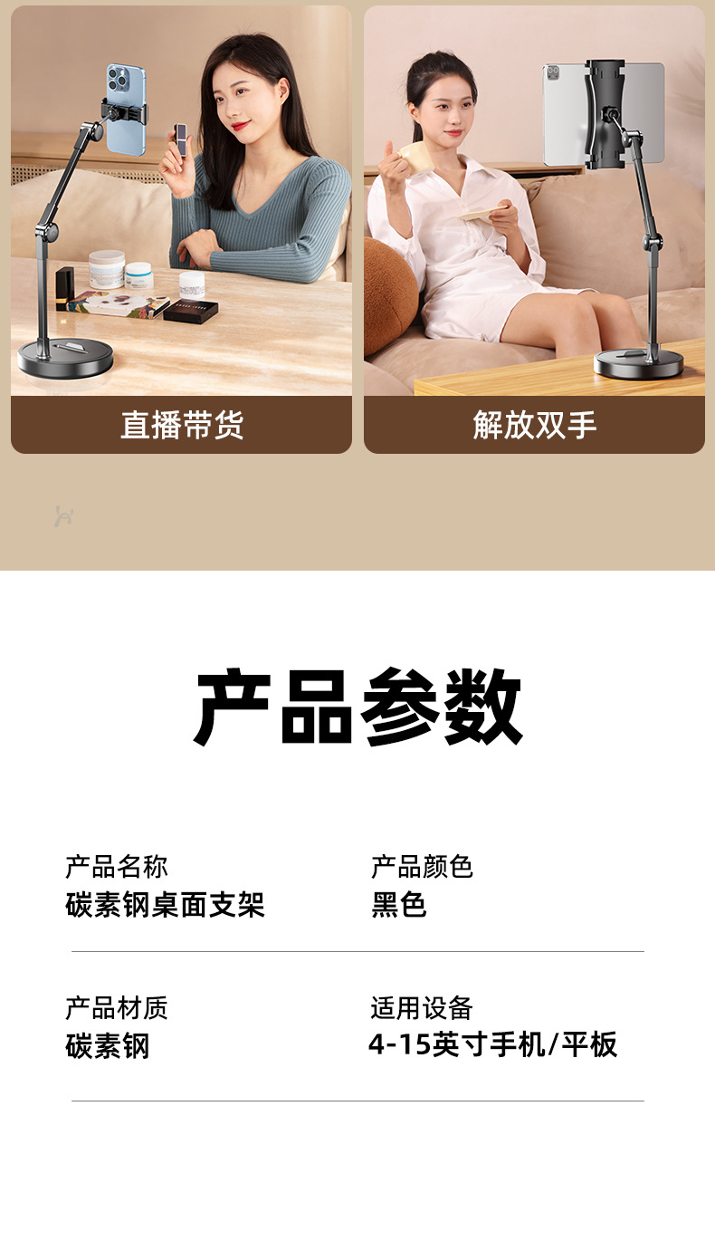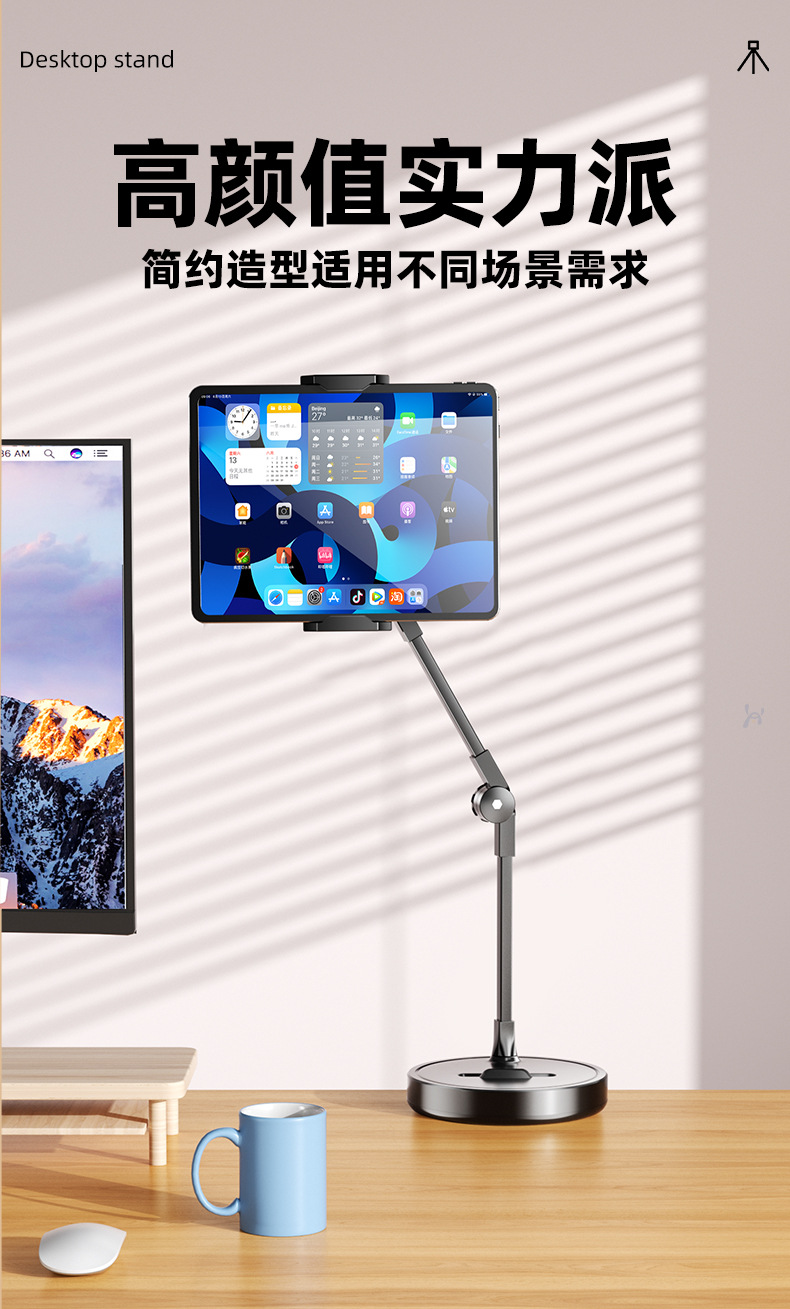 weighted base [carbon steel cantilever] desktop top-shot stand for live streaming