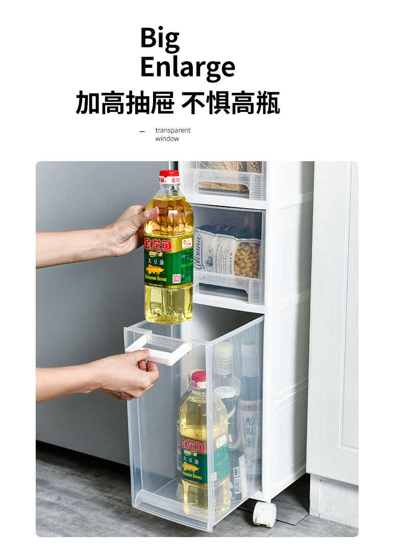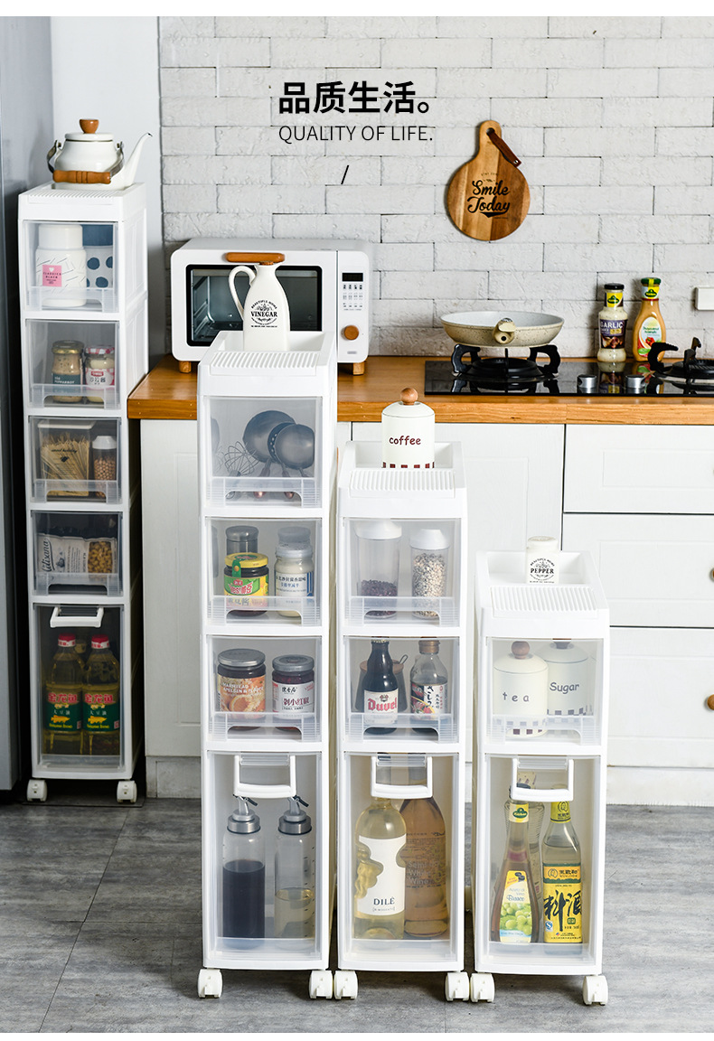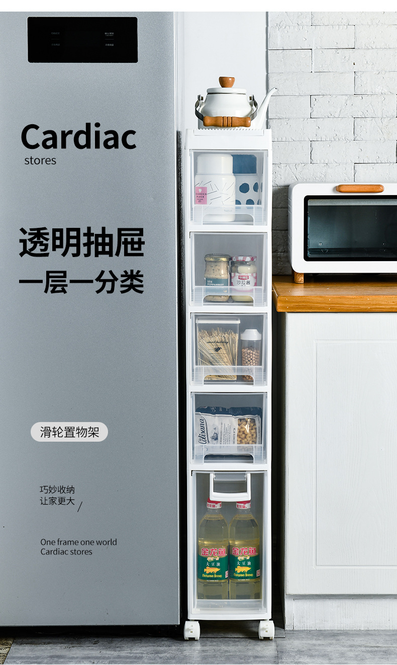 2018 high-top, low-bottom drawer-style gap storage cabinet with no perforations [20cm wide, four tiers]