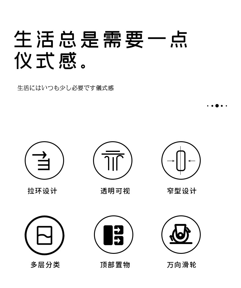 2018 one tall, two short drawer-type gap storage cabinet [20cm wide, three tiers]