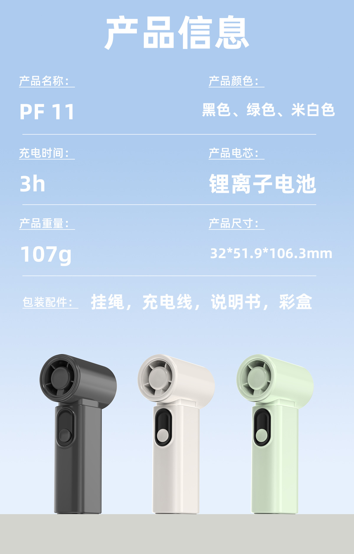 Product Name": "PF11 Handheld Fan