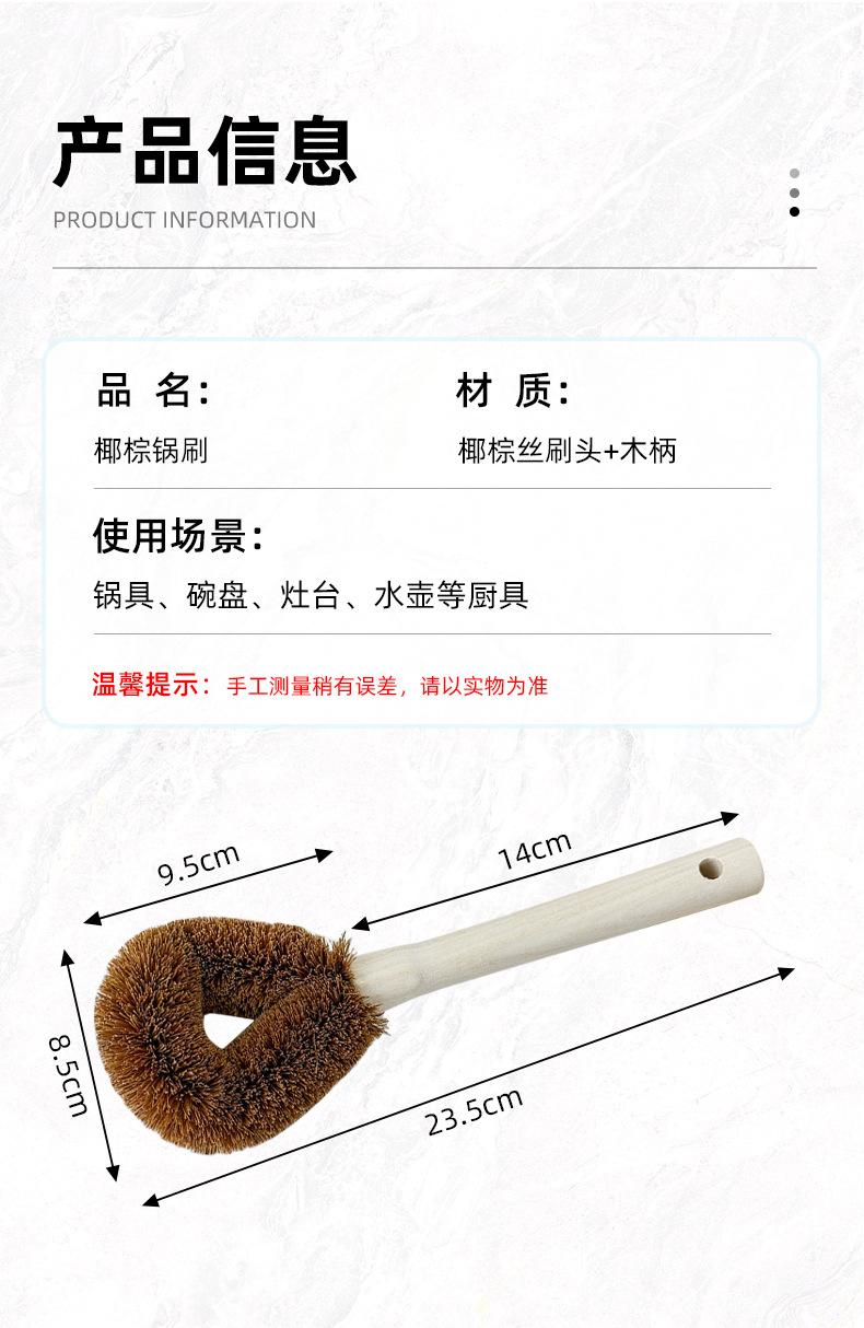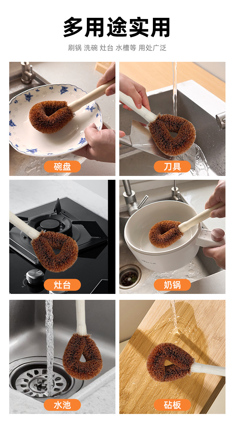 coconut palm wok brush, one piece