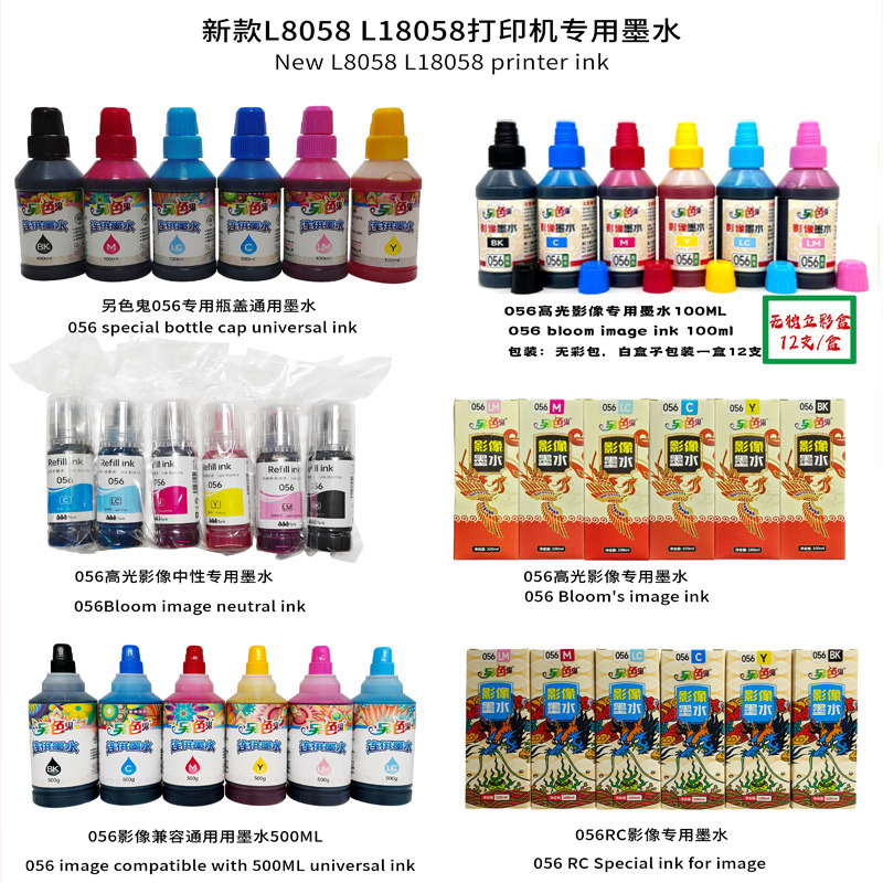 Another color ghost 056 ink, new model L8058 and L18058, universal ink, high-gloss imaging, RC imaging ink, multiple categories available for selection.