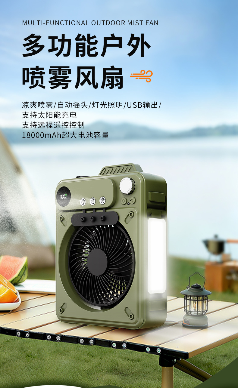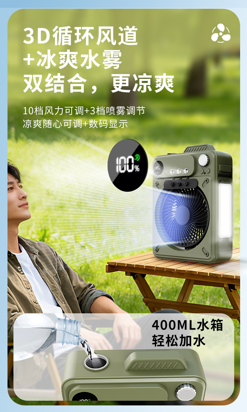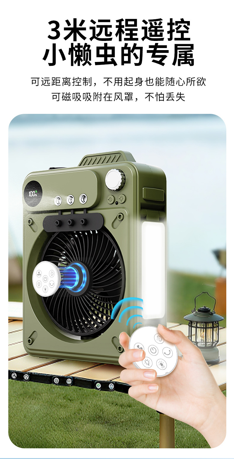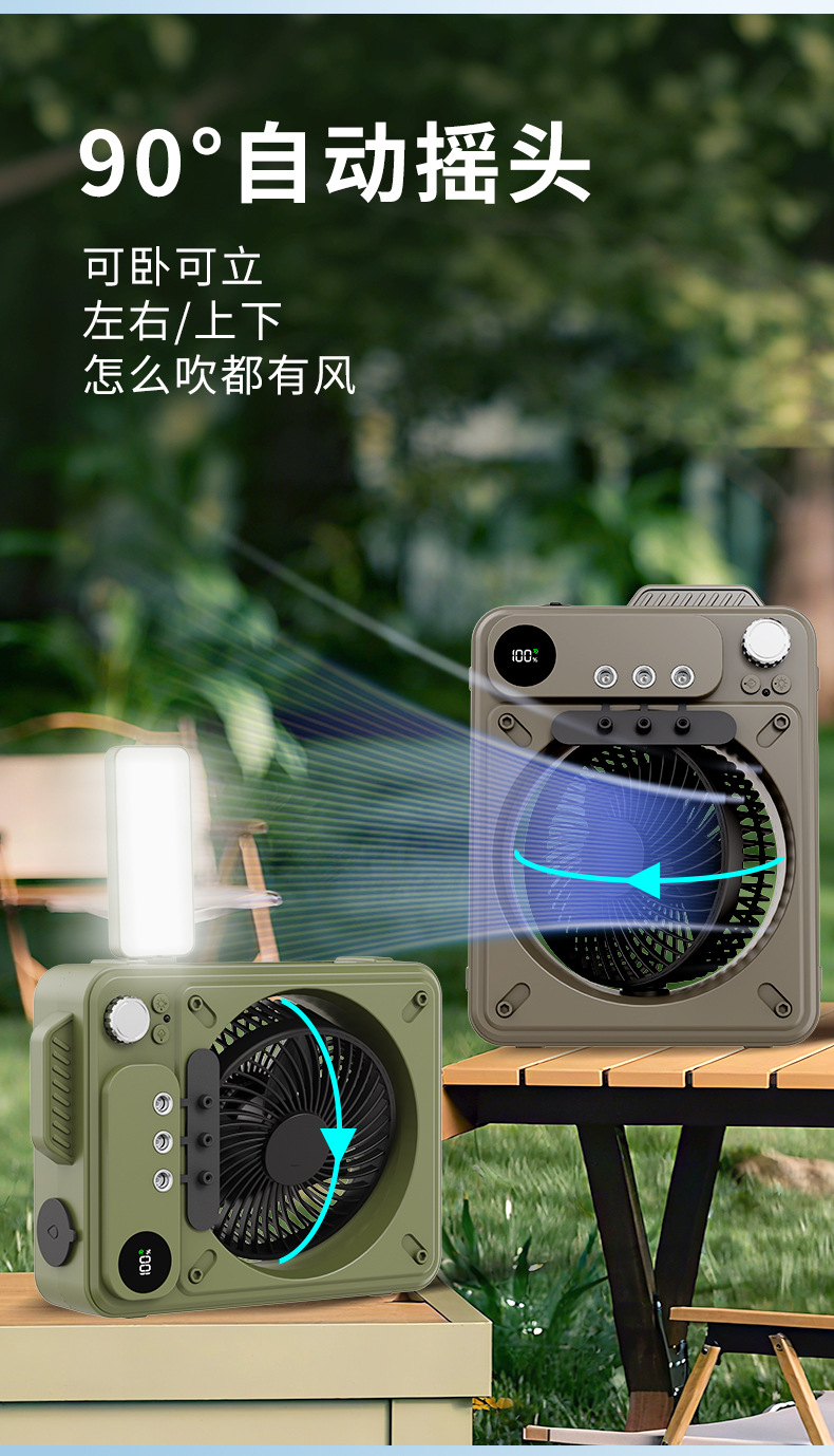 new multi-functional outdoor large capacity built-in battery camping portable spray fan