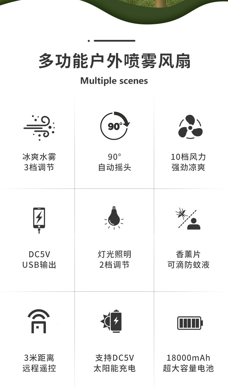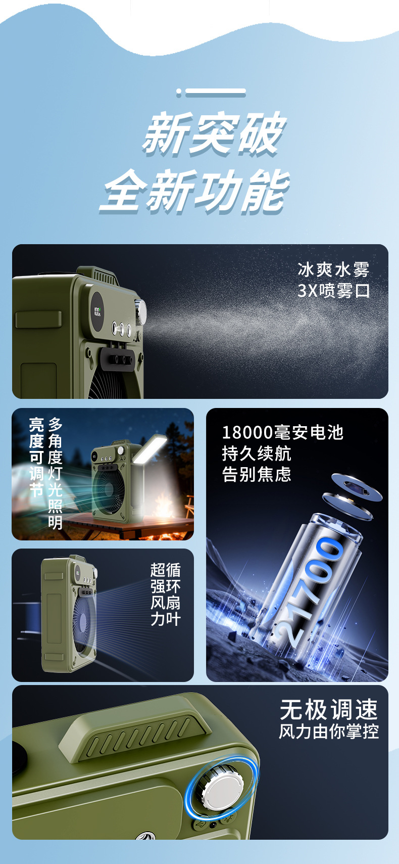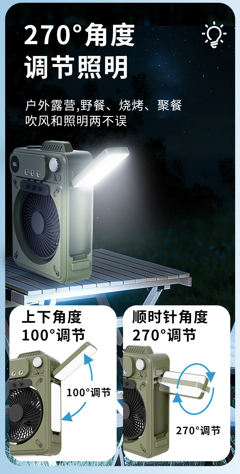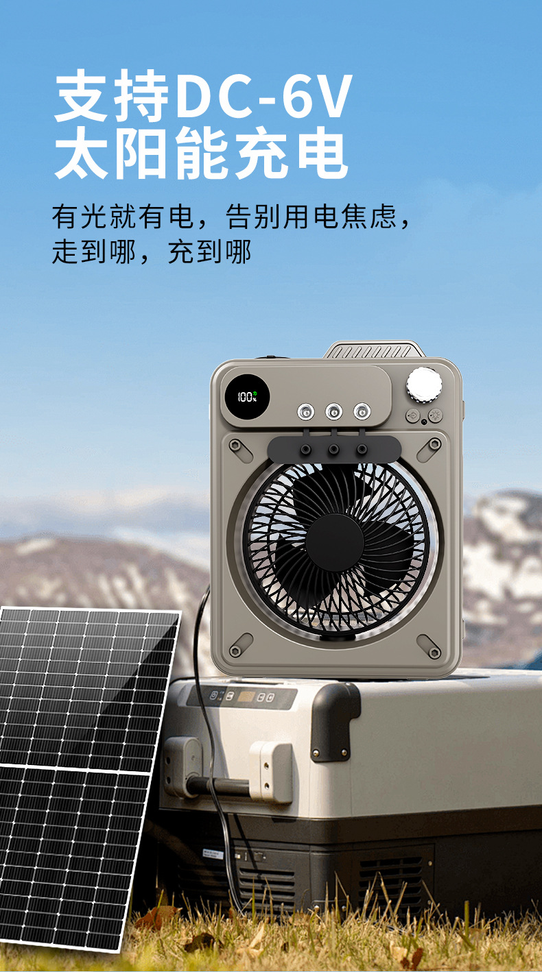 new multi-functional outdoor large capacity built-in battery camping portable spray fan