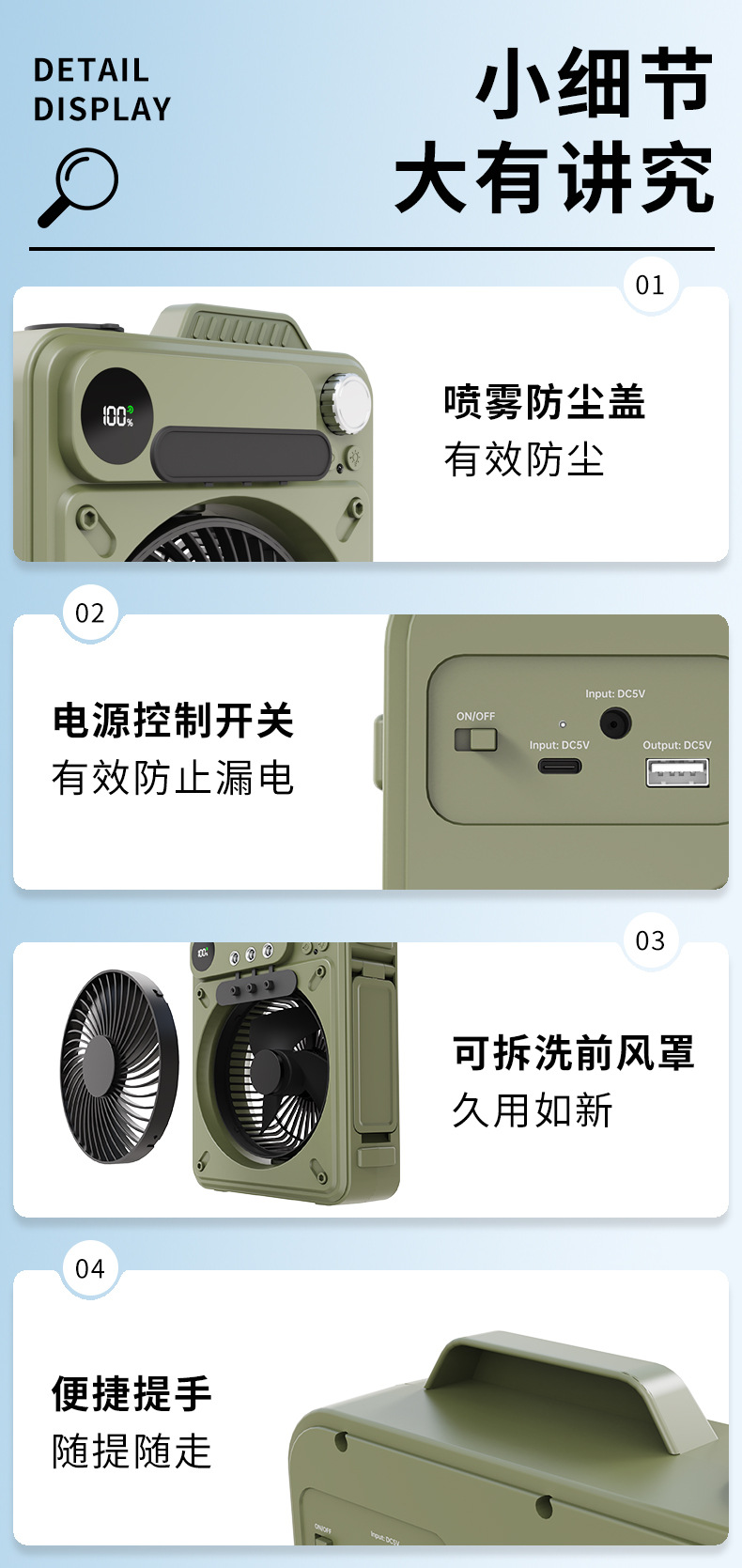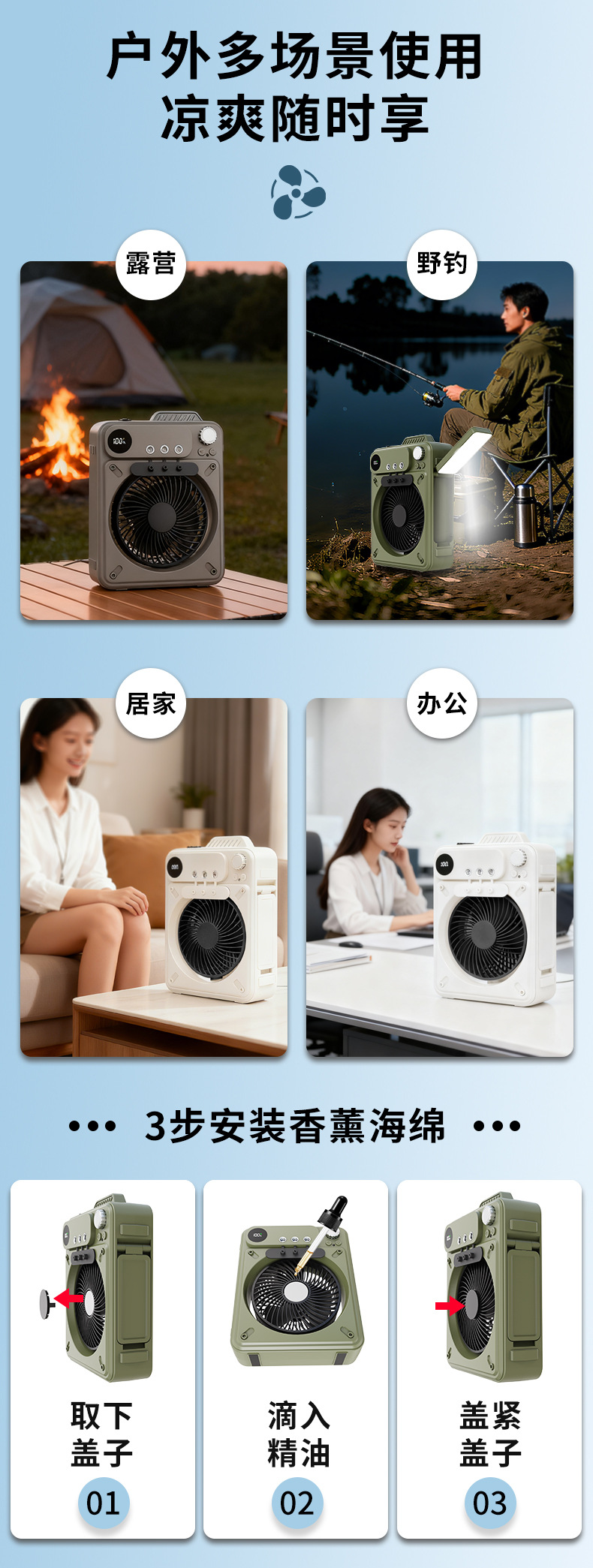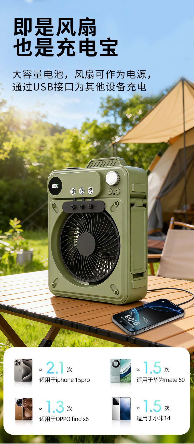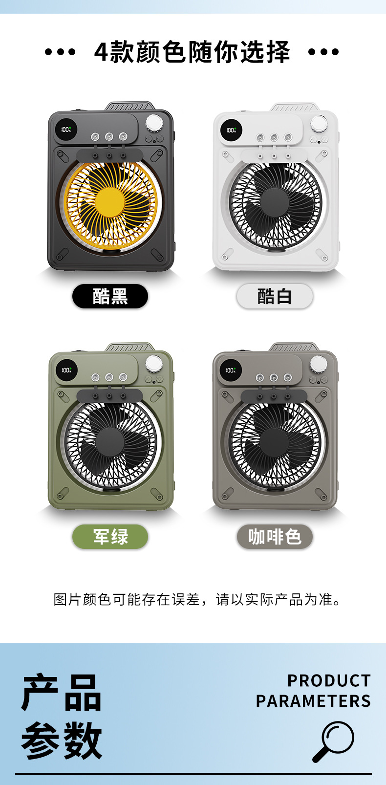 new multi-functional outdoor large capacity built-in battery camping portable spray fan