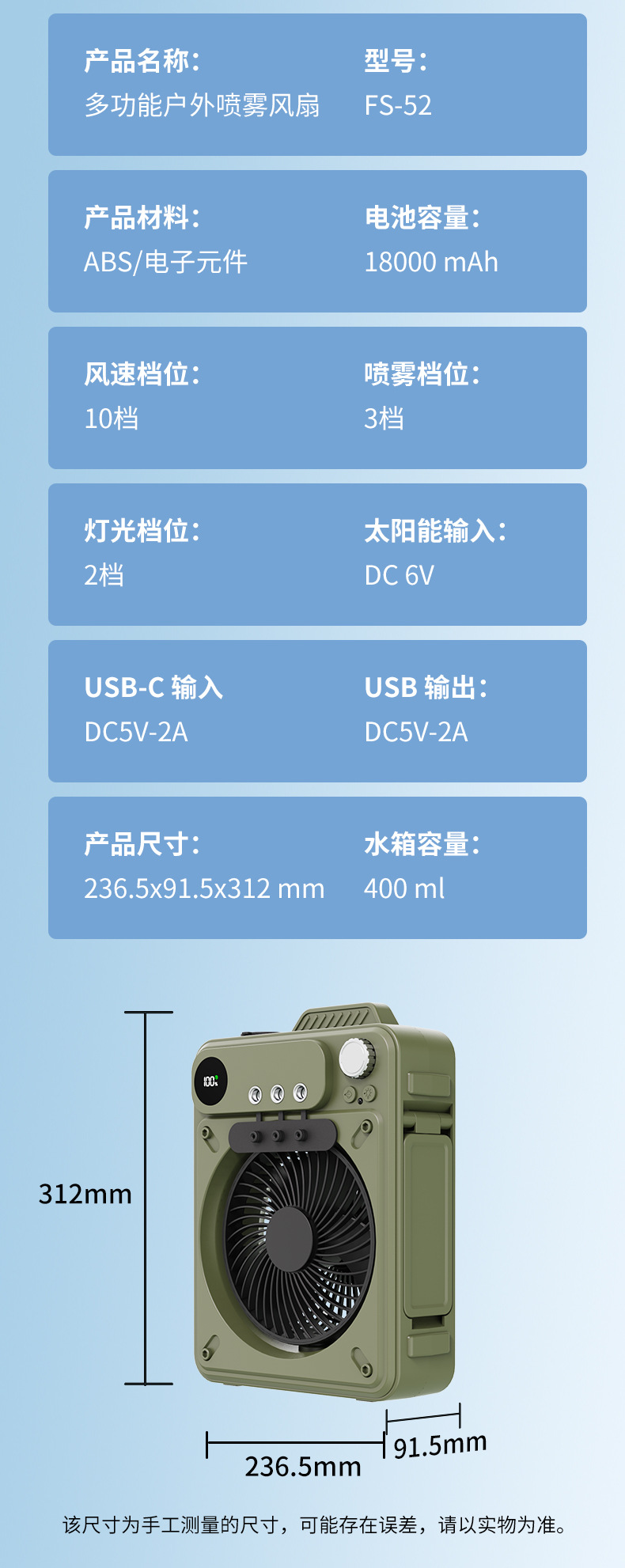 product specifications: 236.5*91.5*312 m