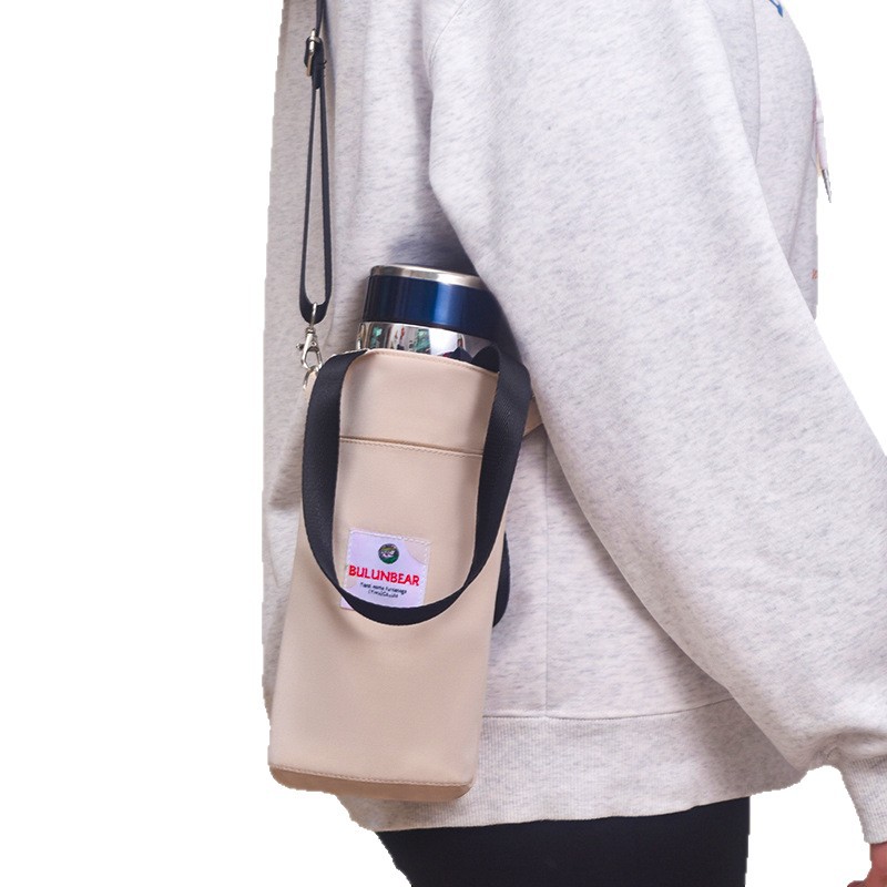 warm beige cup sleeve with strap
