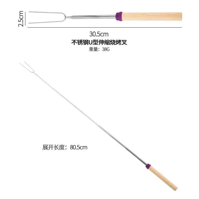 Material:The extendable part is made of 201 stainless steel, the fork head is made of 304 stainless steel, and the handle is made of wood.