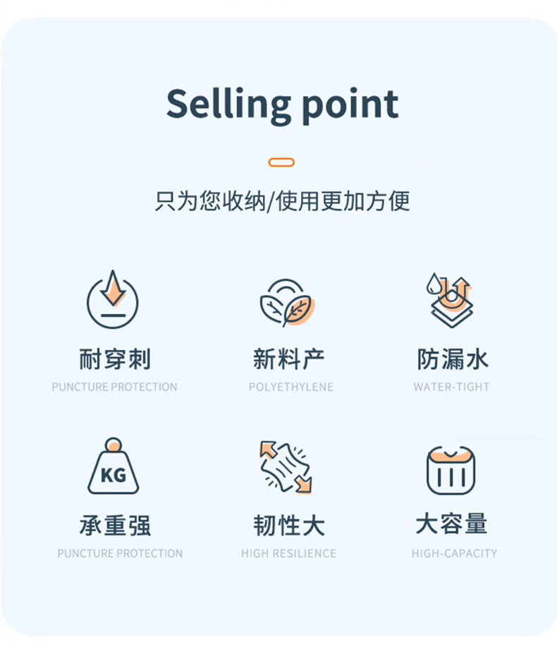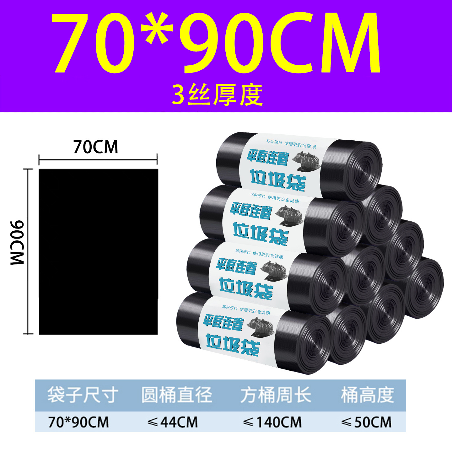 70*90 cm, english text (4-mil thickness), 5 rolls per bag, 100 bags.