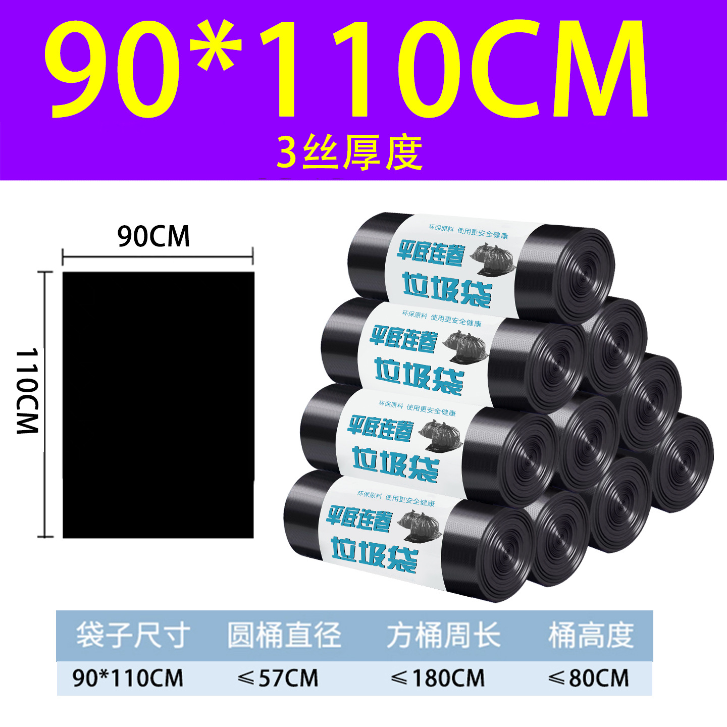 90*110 cm, 4-mil thickness, 5 rolls per bag, 100 bags.