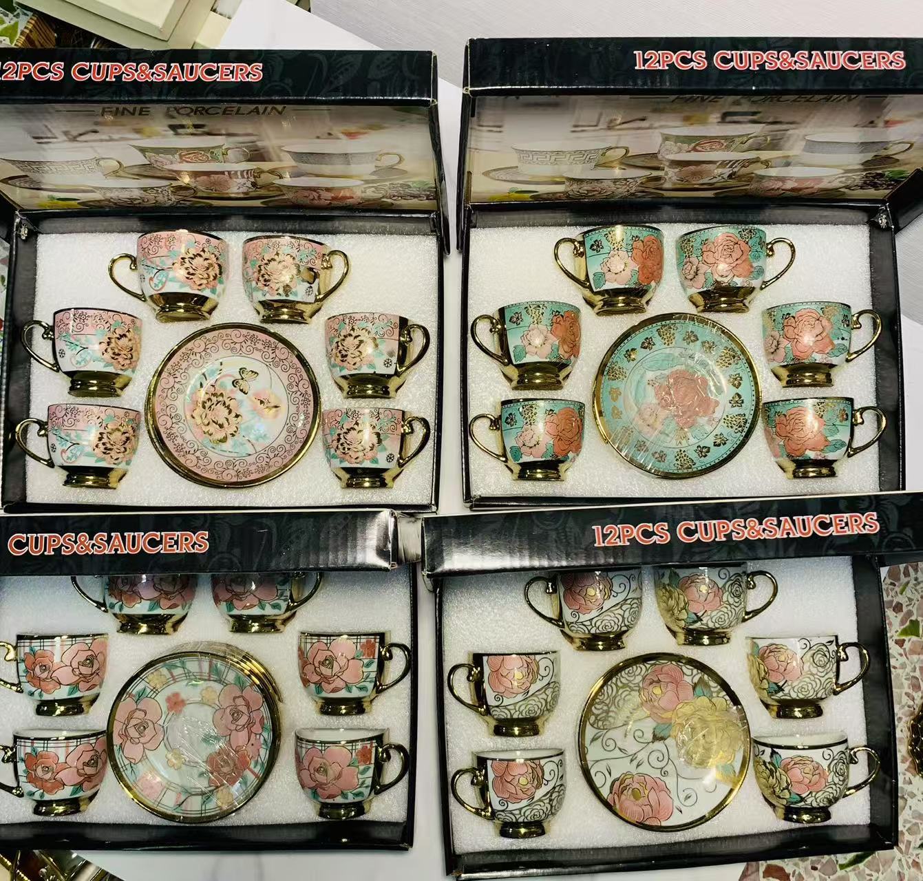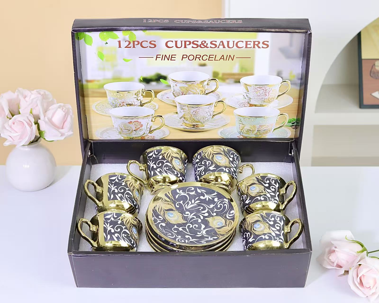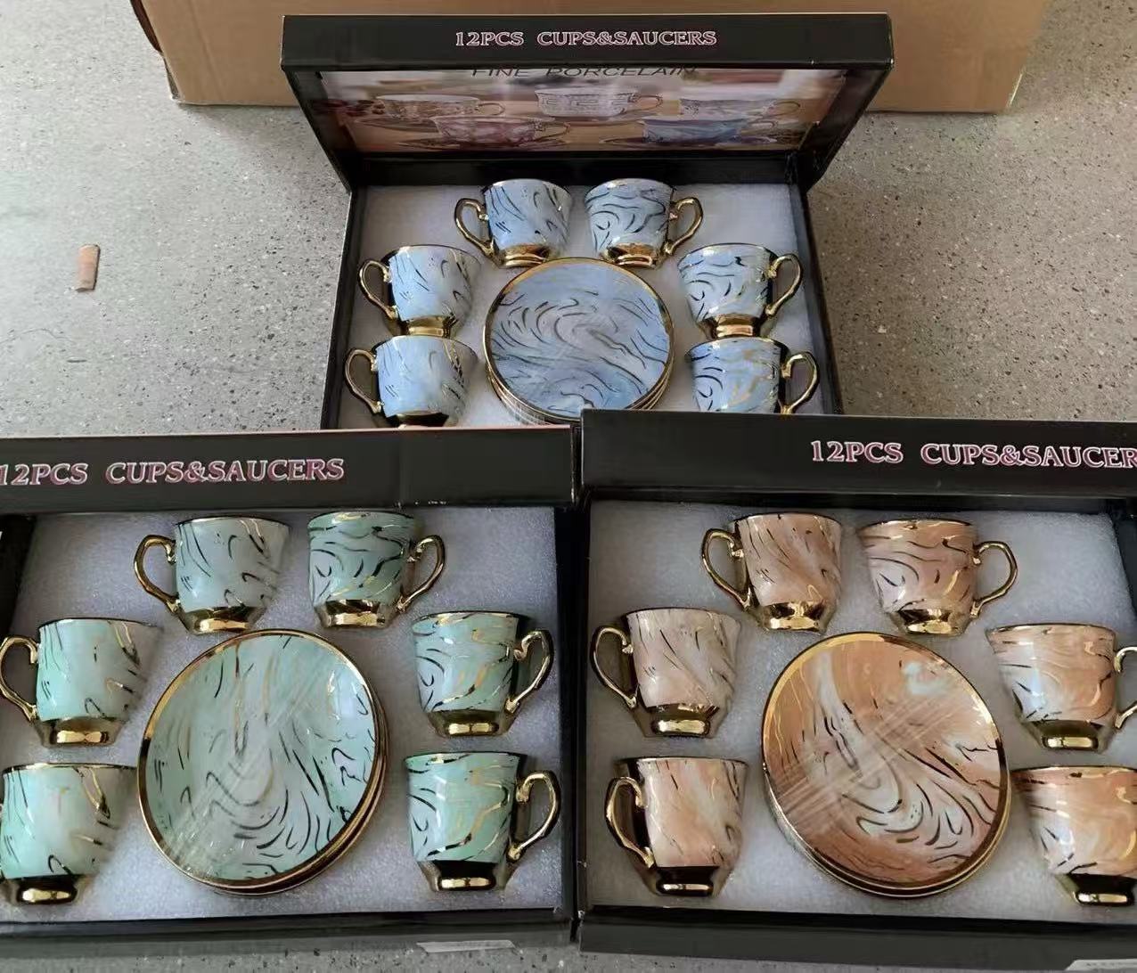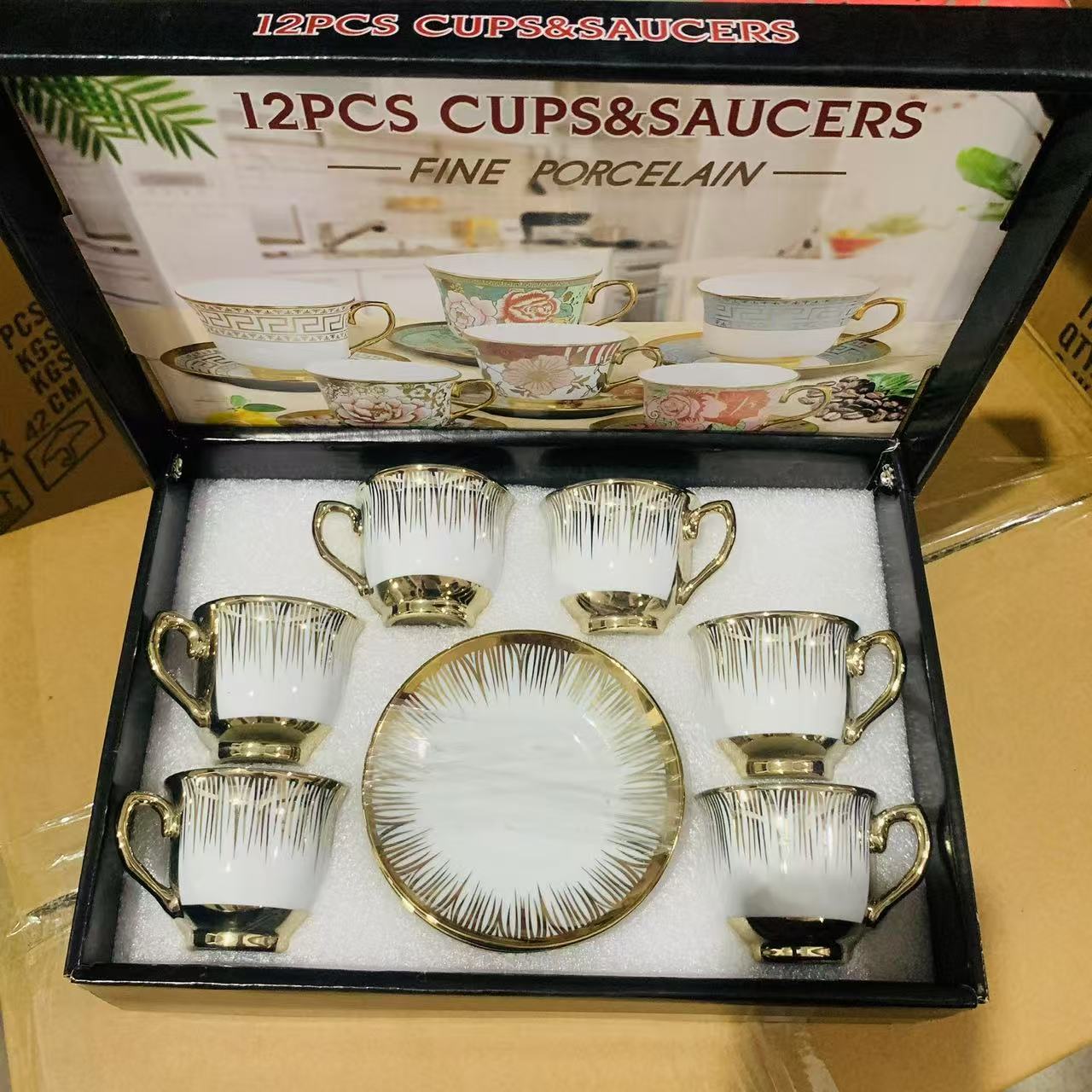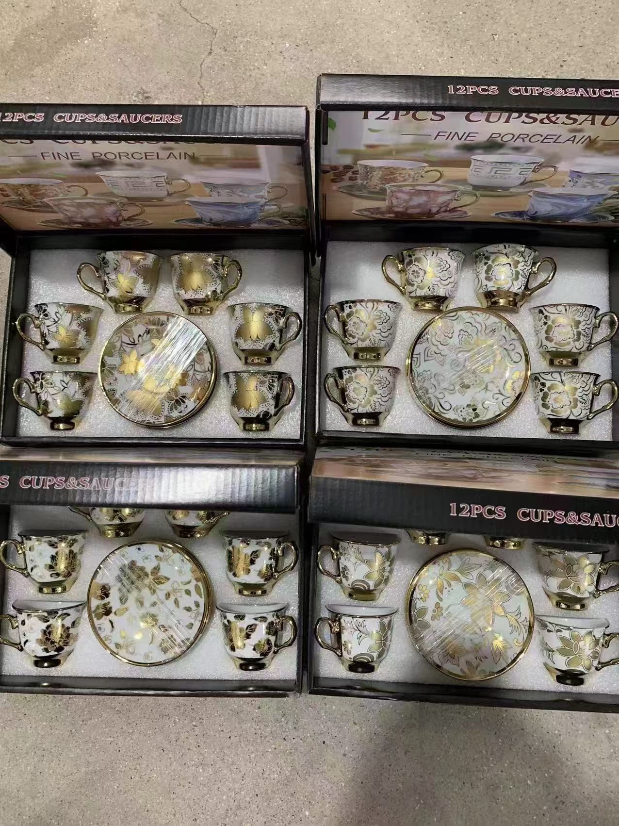 1 kettle, 4 cups, 1 box, 24 sets