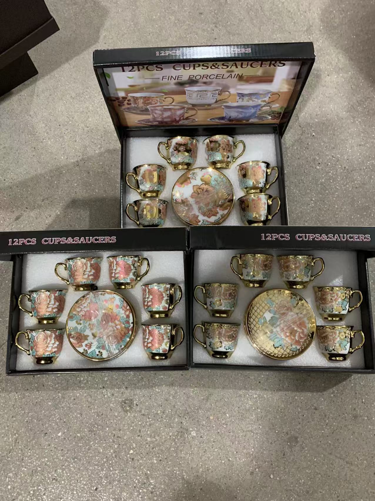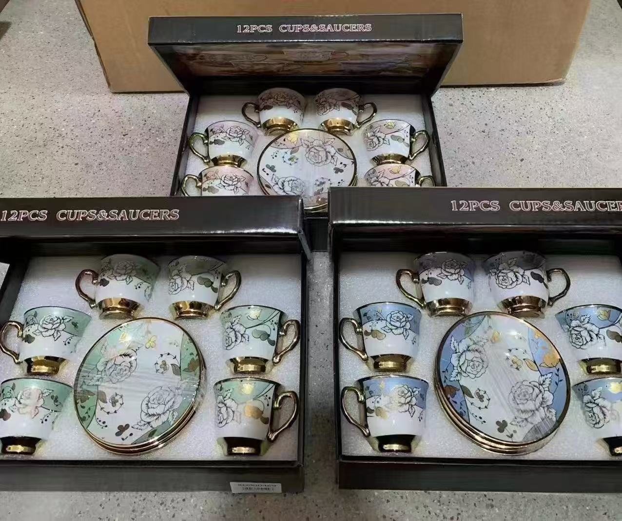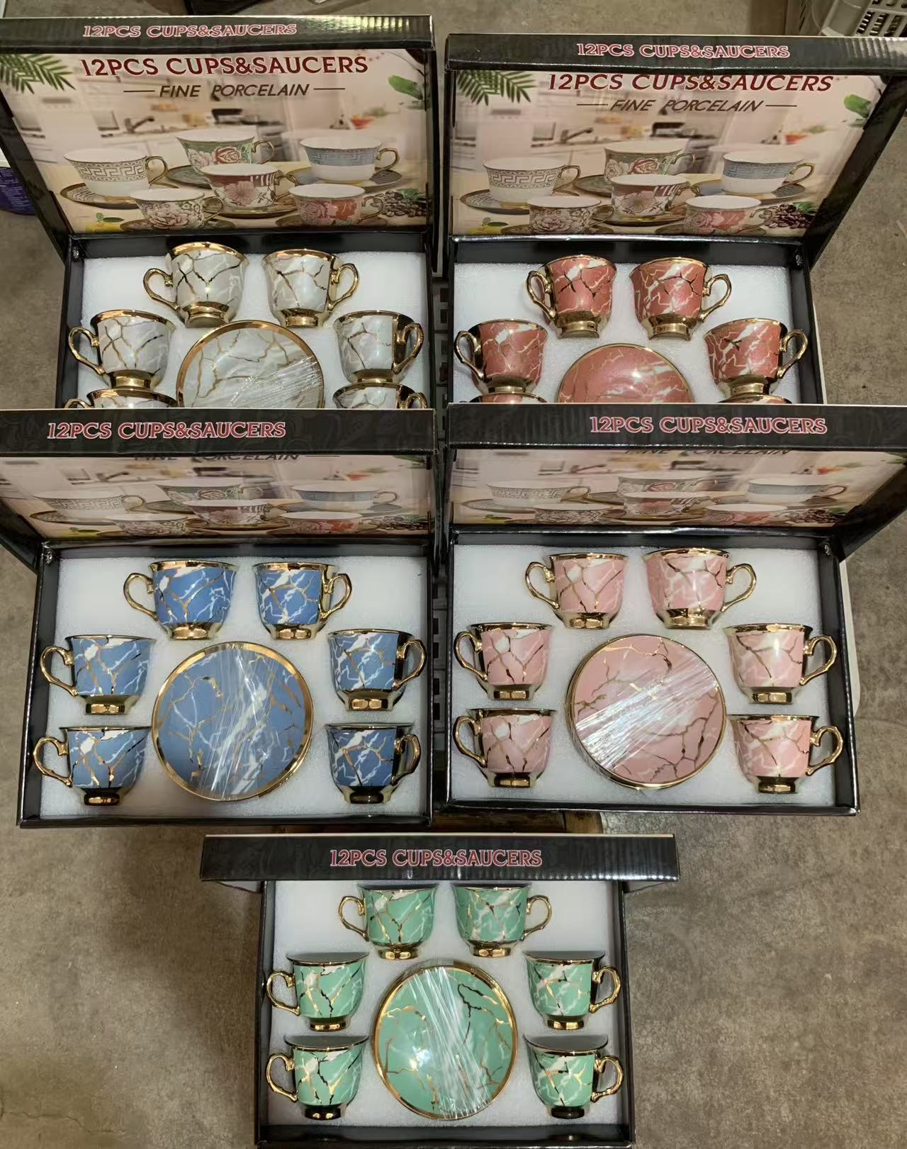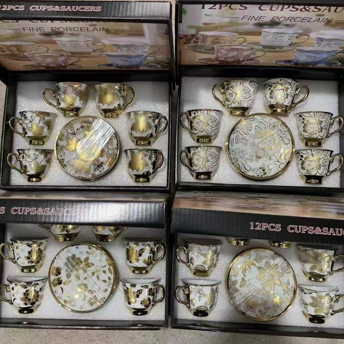 1 kettle, 4 cups, 1 box, 24 sets