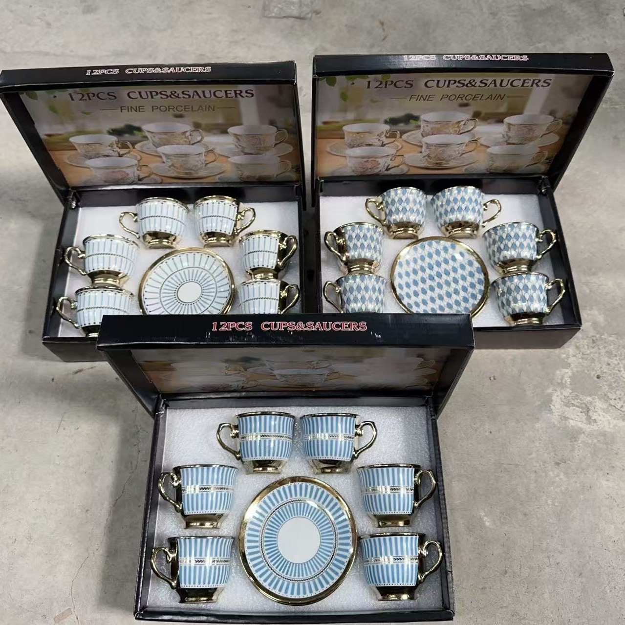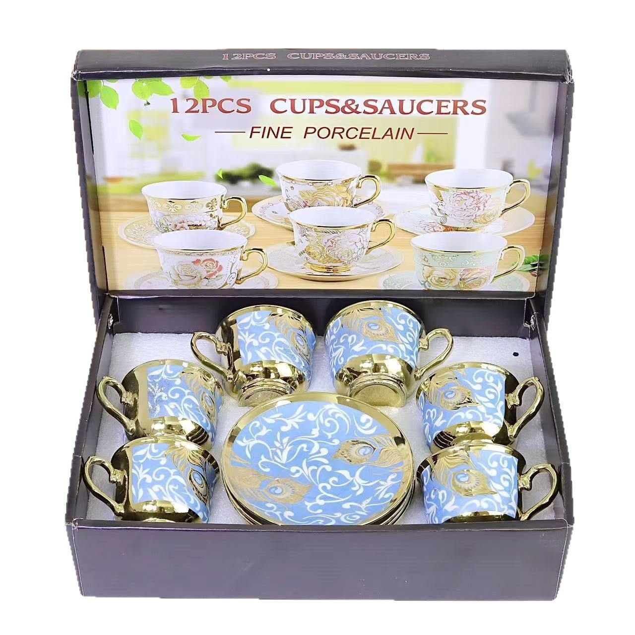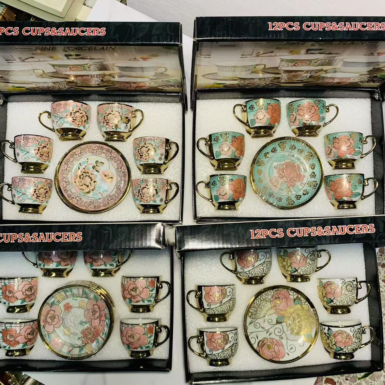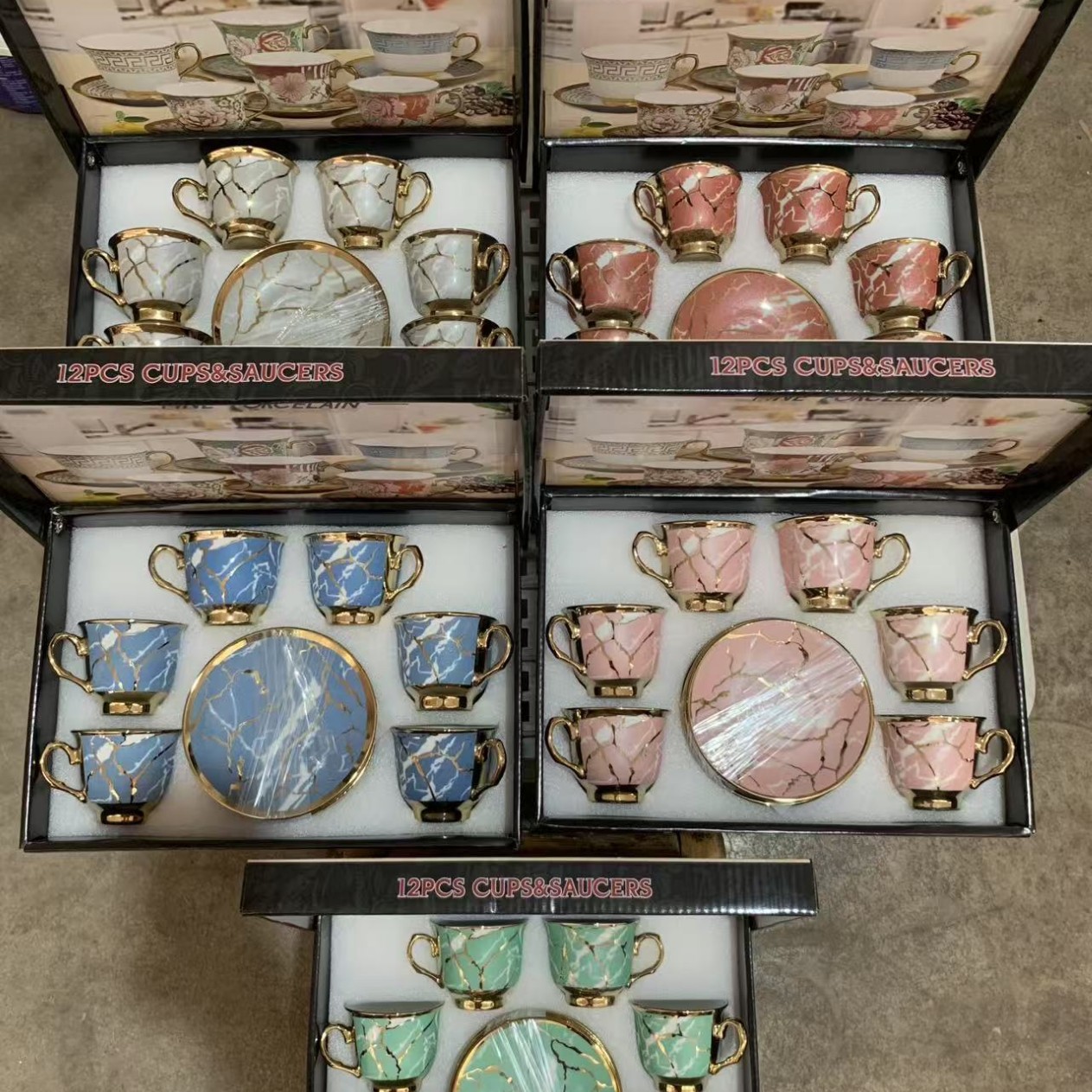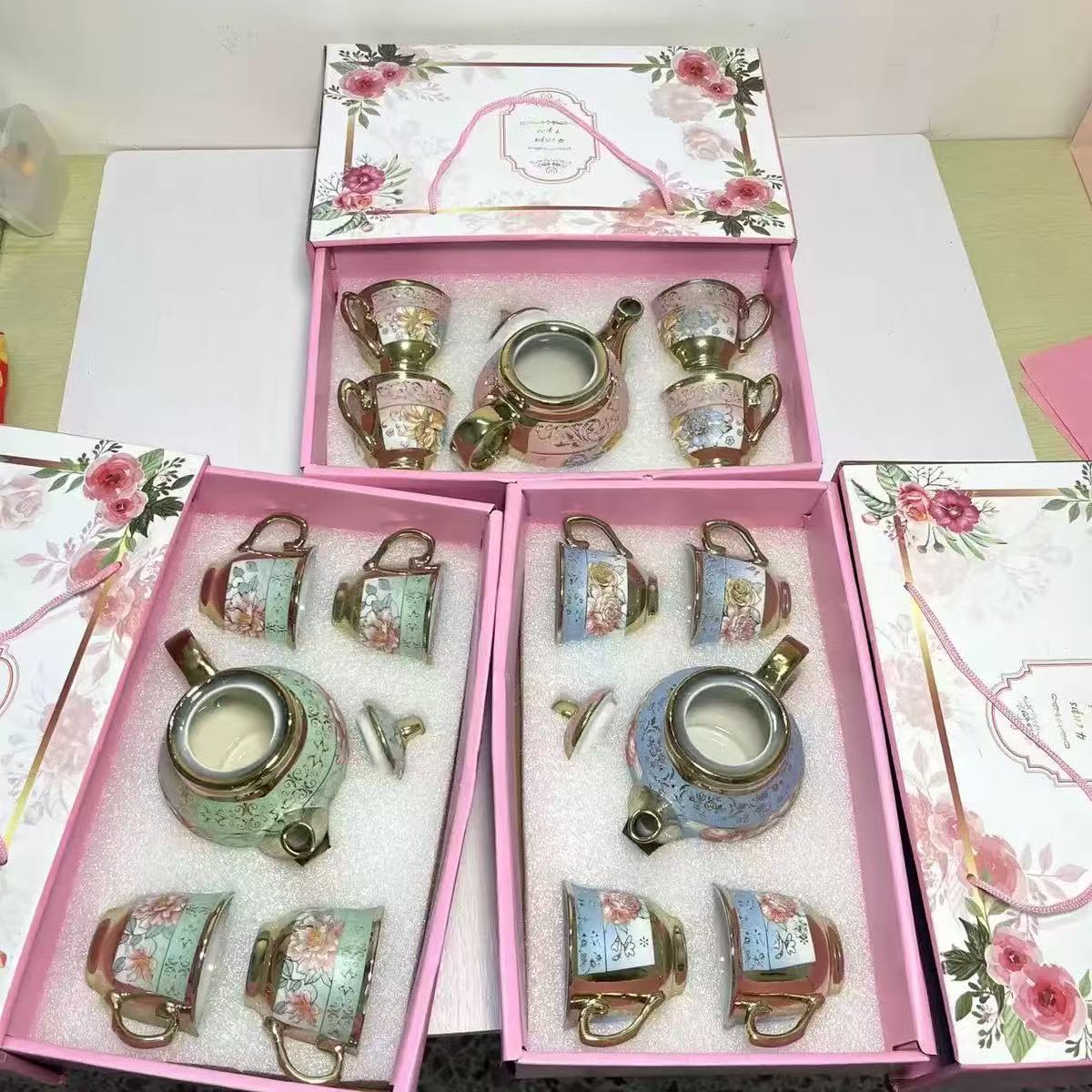 1 kettle, 4 cups, 1 box, 24 sets