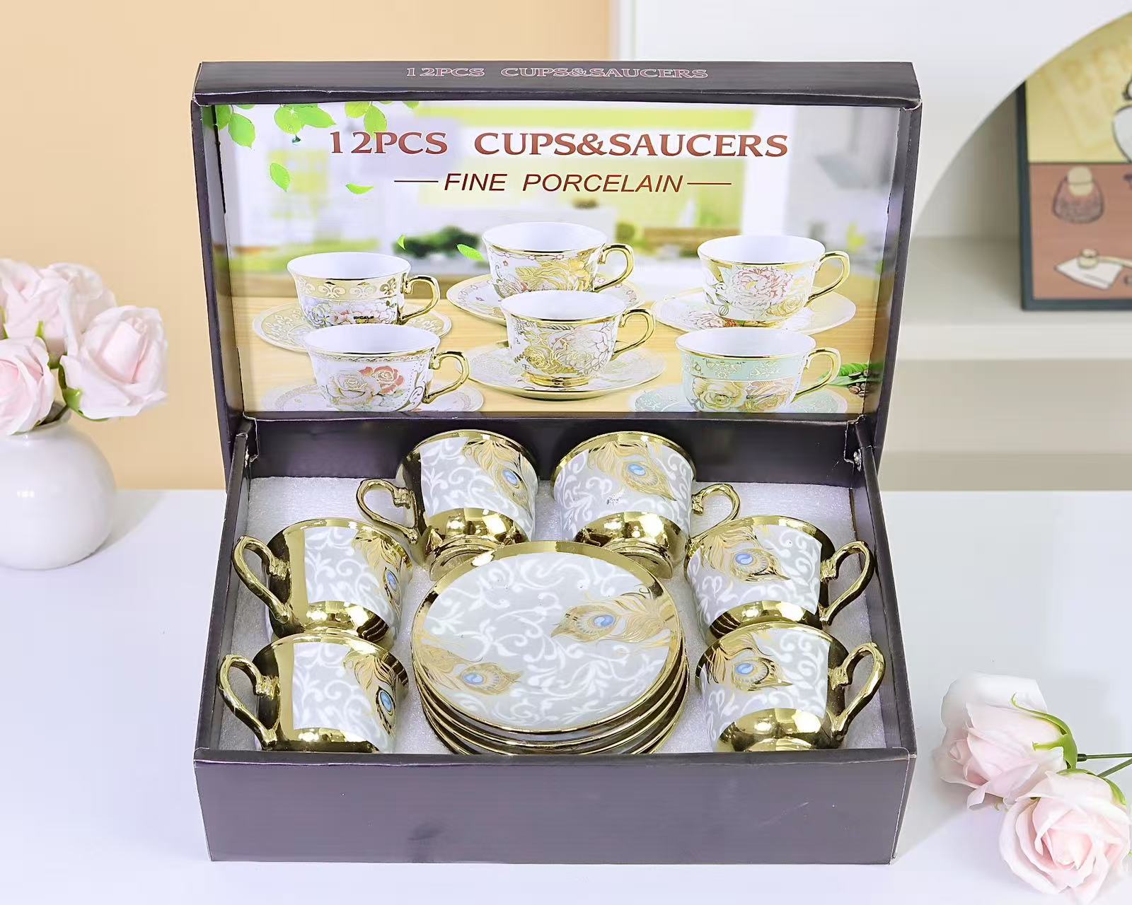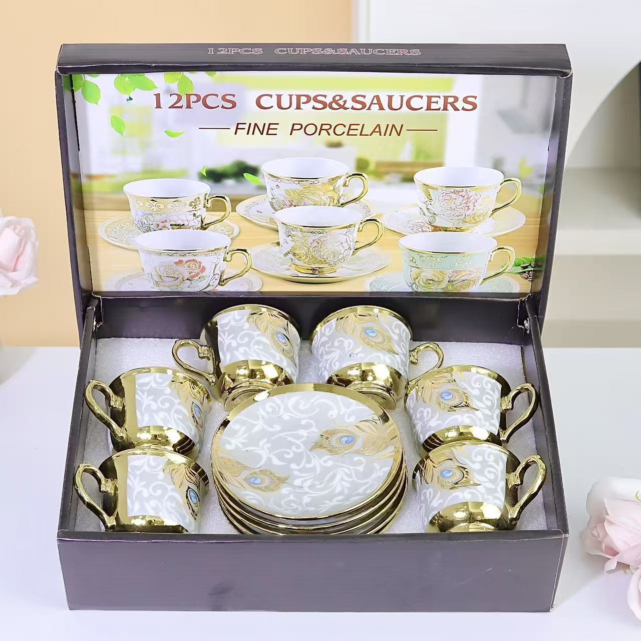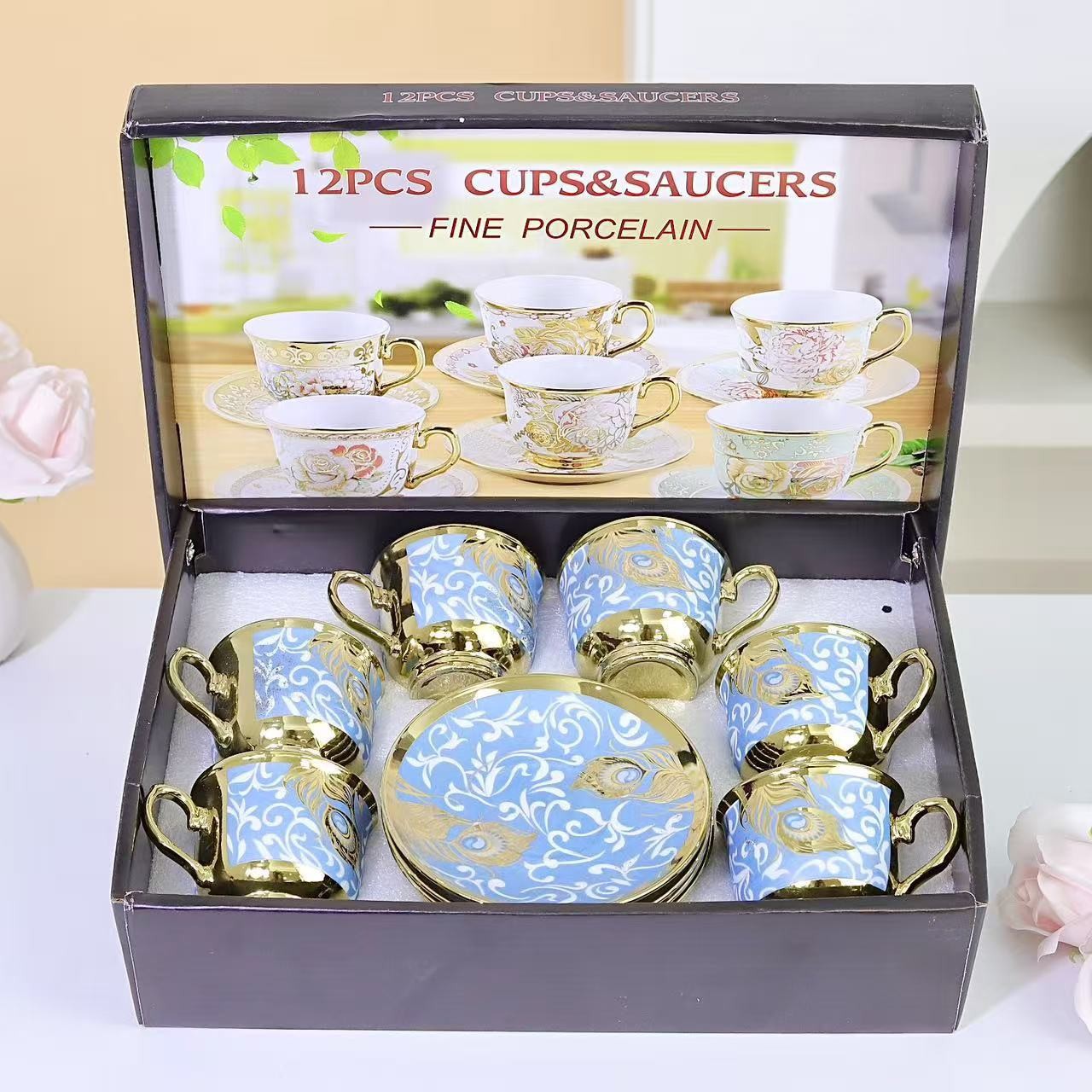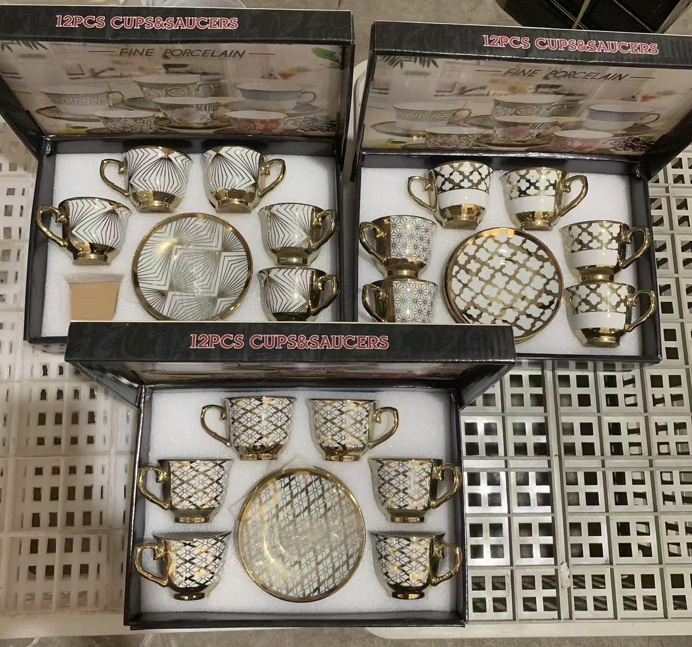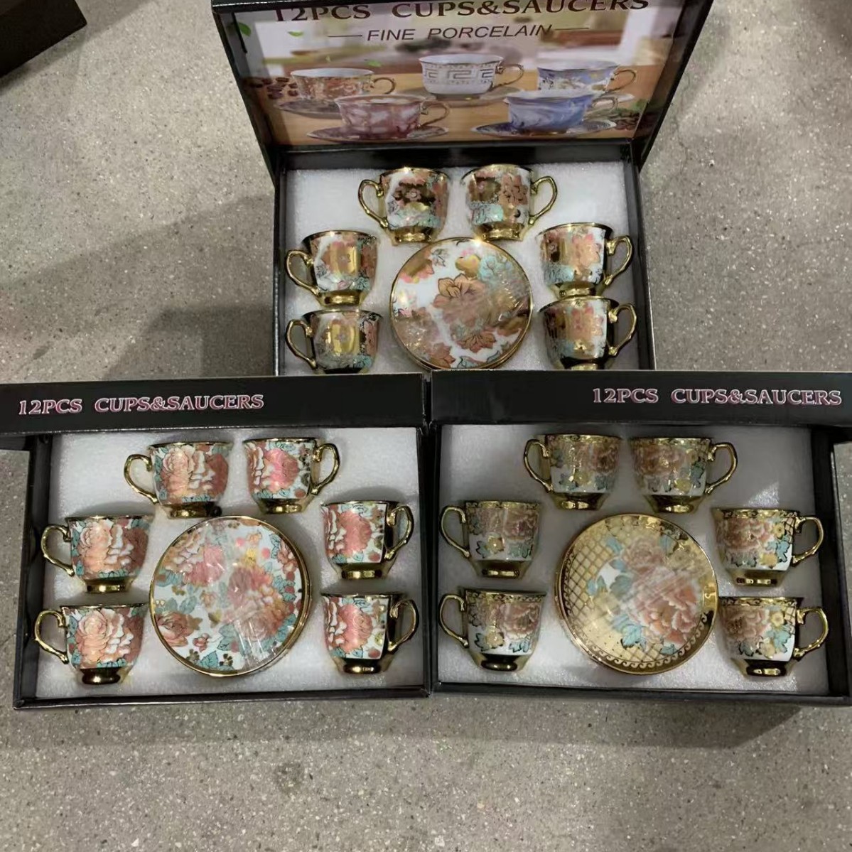 1 kettle, 4 cups, 1 box, 24 sets
