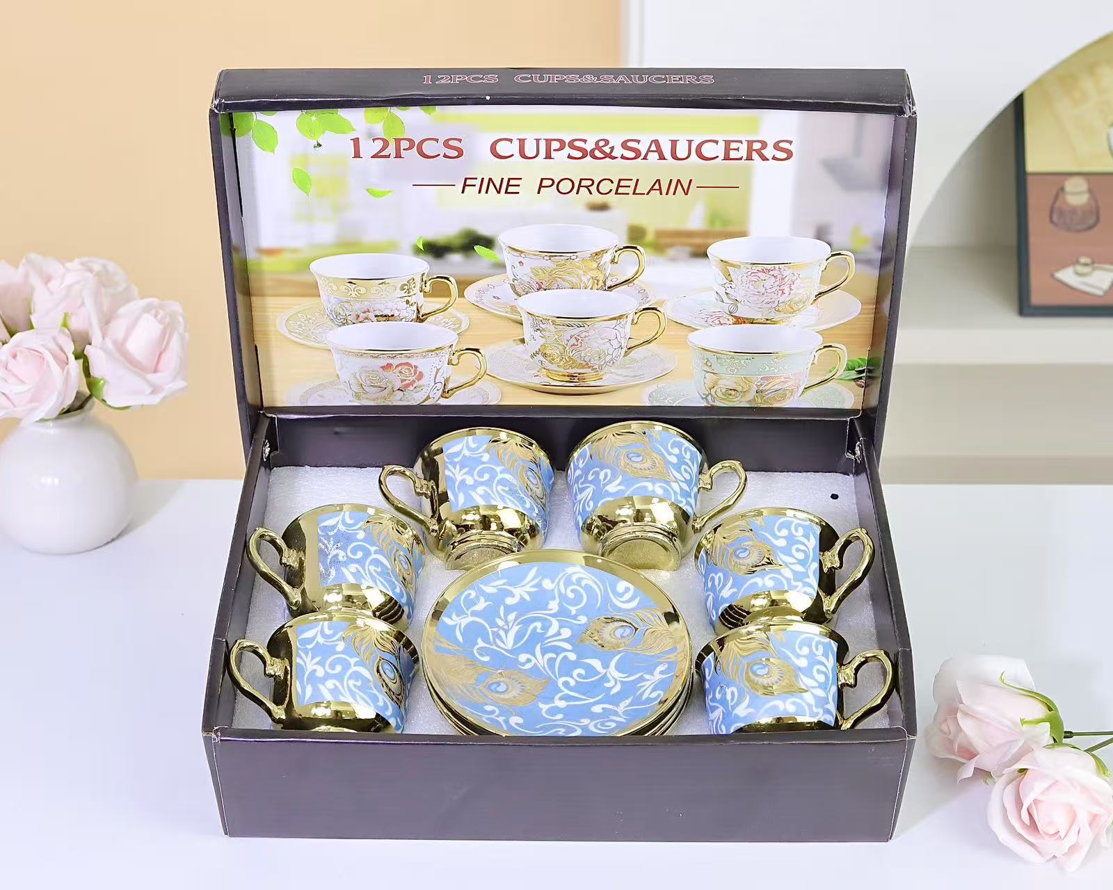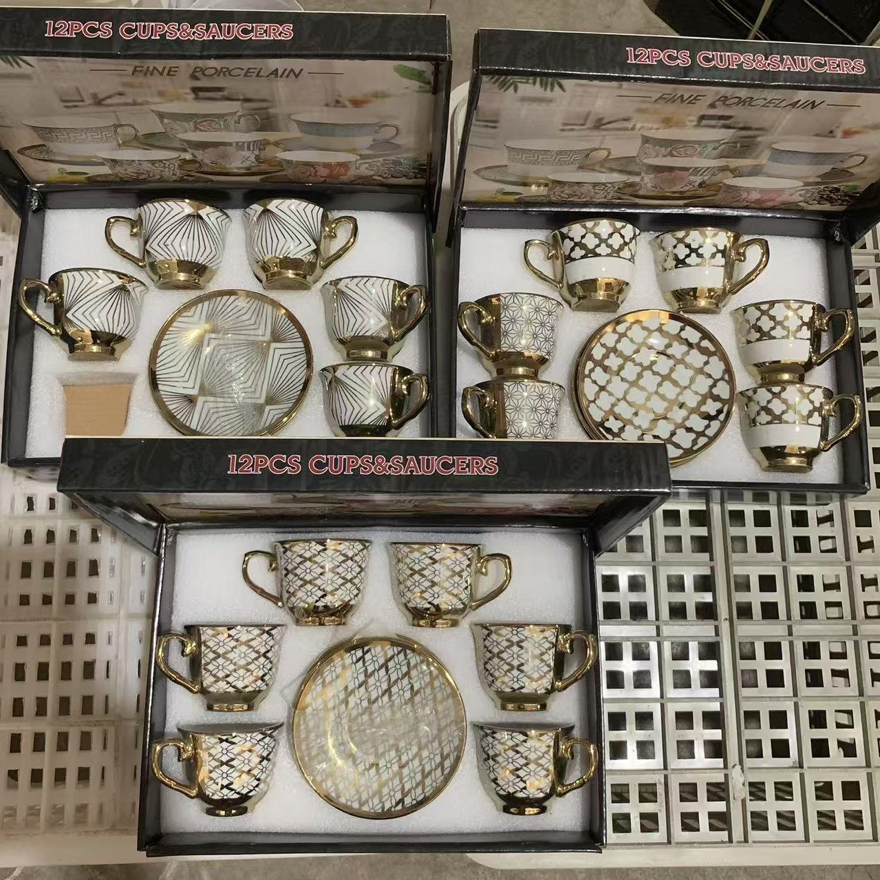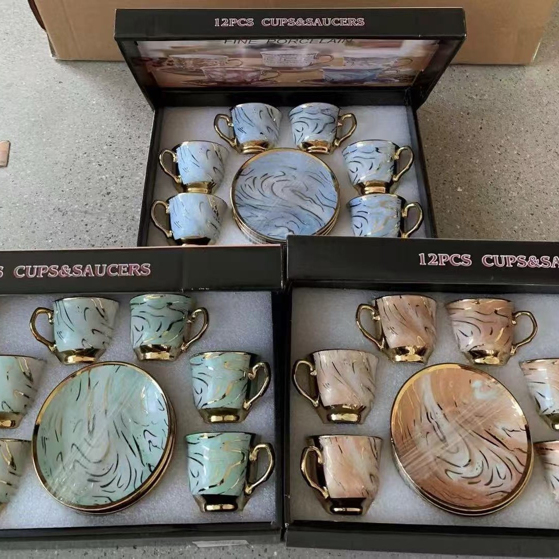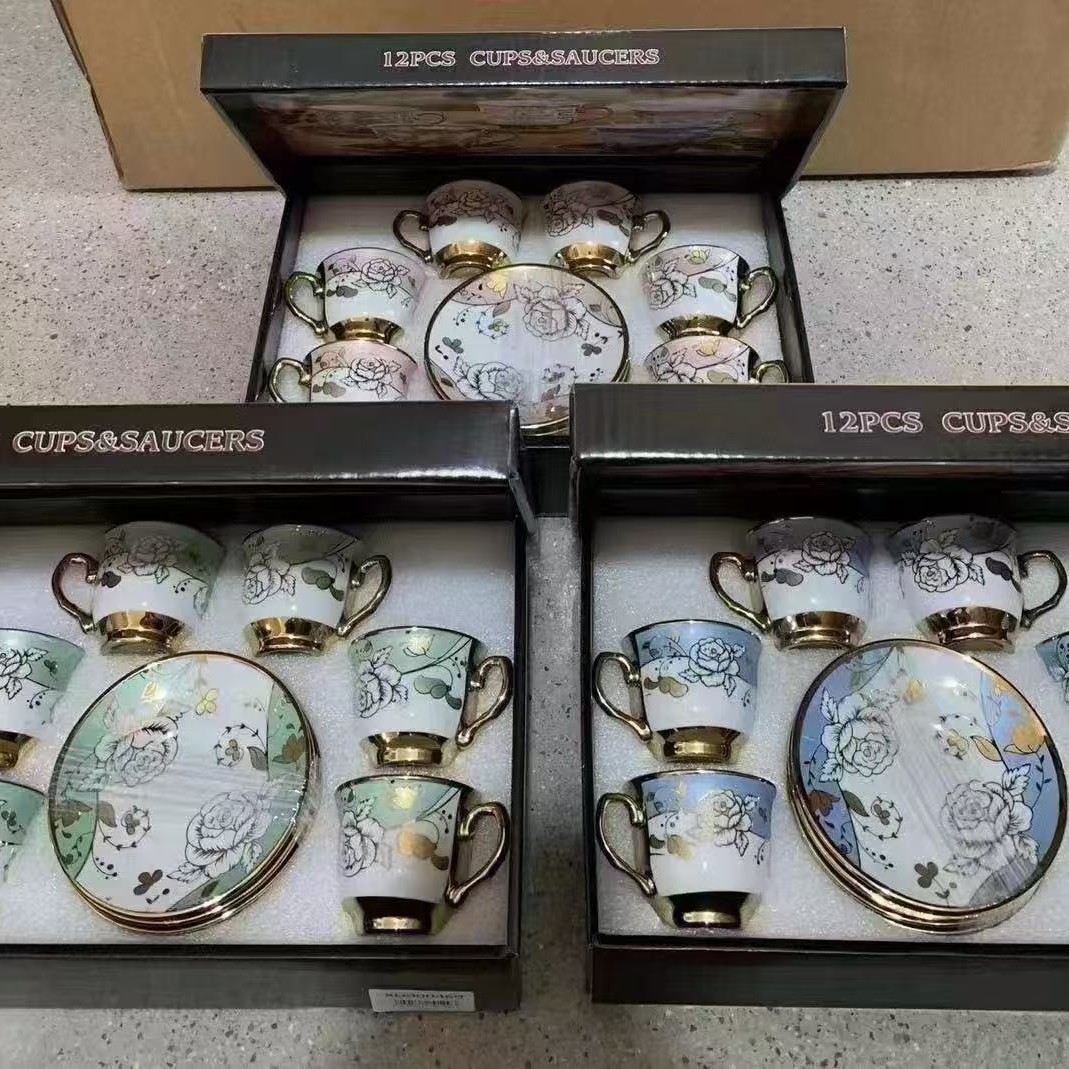 6 cups, 6 plates, 1 case, 24 sets