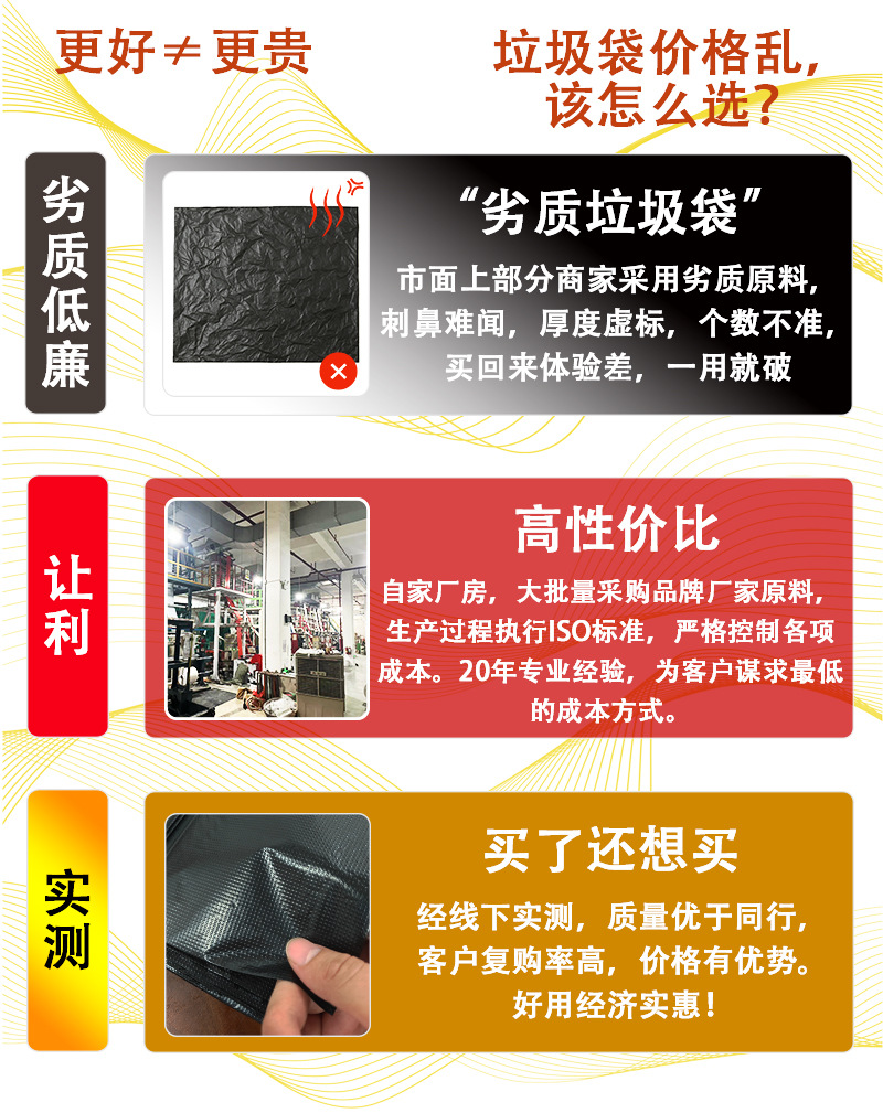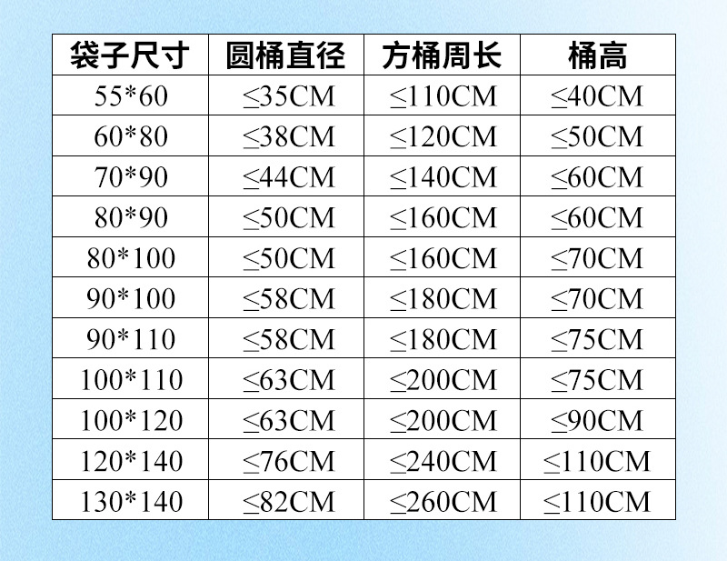 extra-thick 100*120/6-micron (for kitchen waste only), bearing about 70 half a kilos, one piece