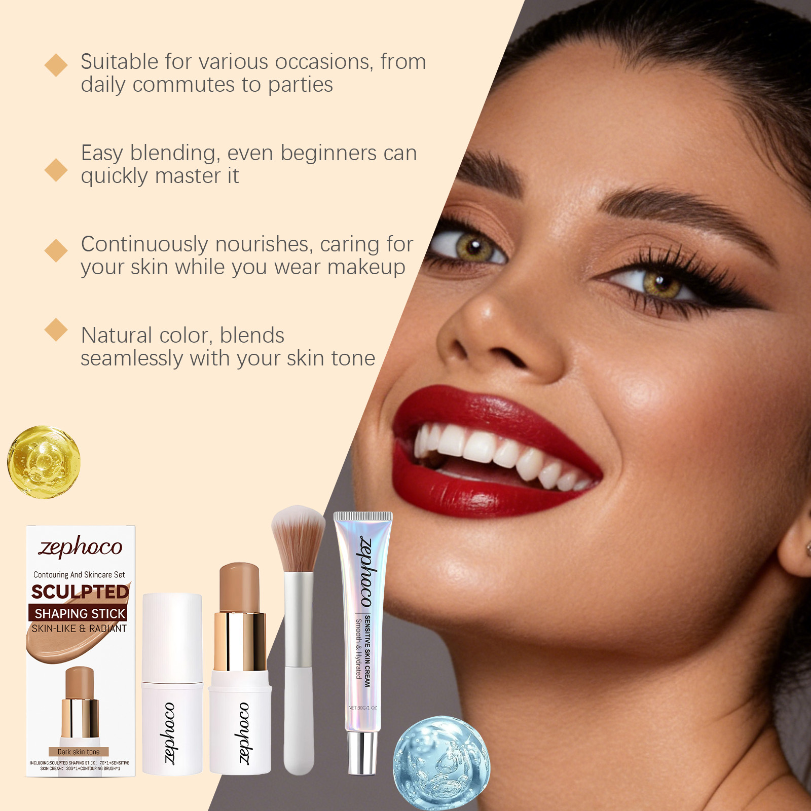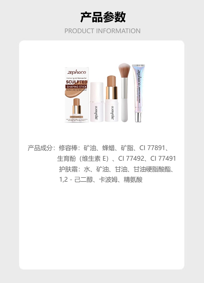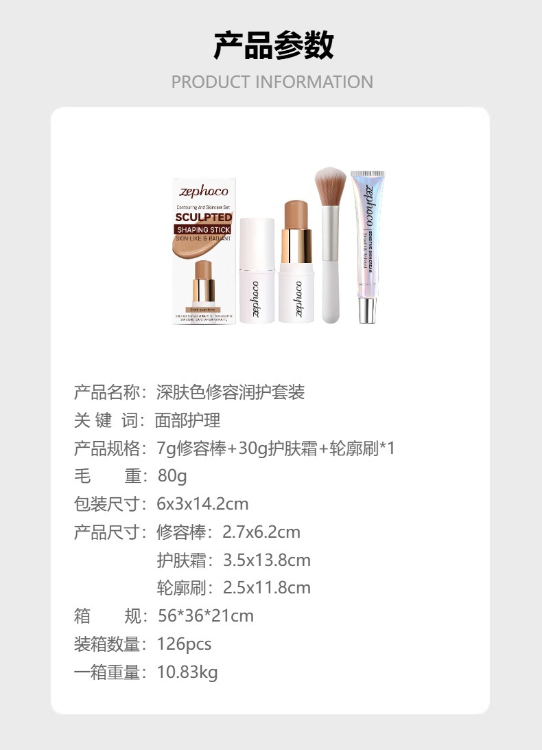7g contour stick + 30g skin cream +1 contour brush (for export sales only, not for domestic sales; purchase is deemed as tacit acceptance of this condition.)