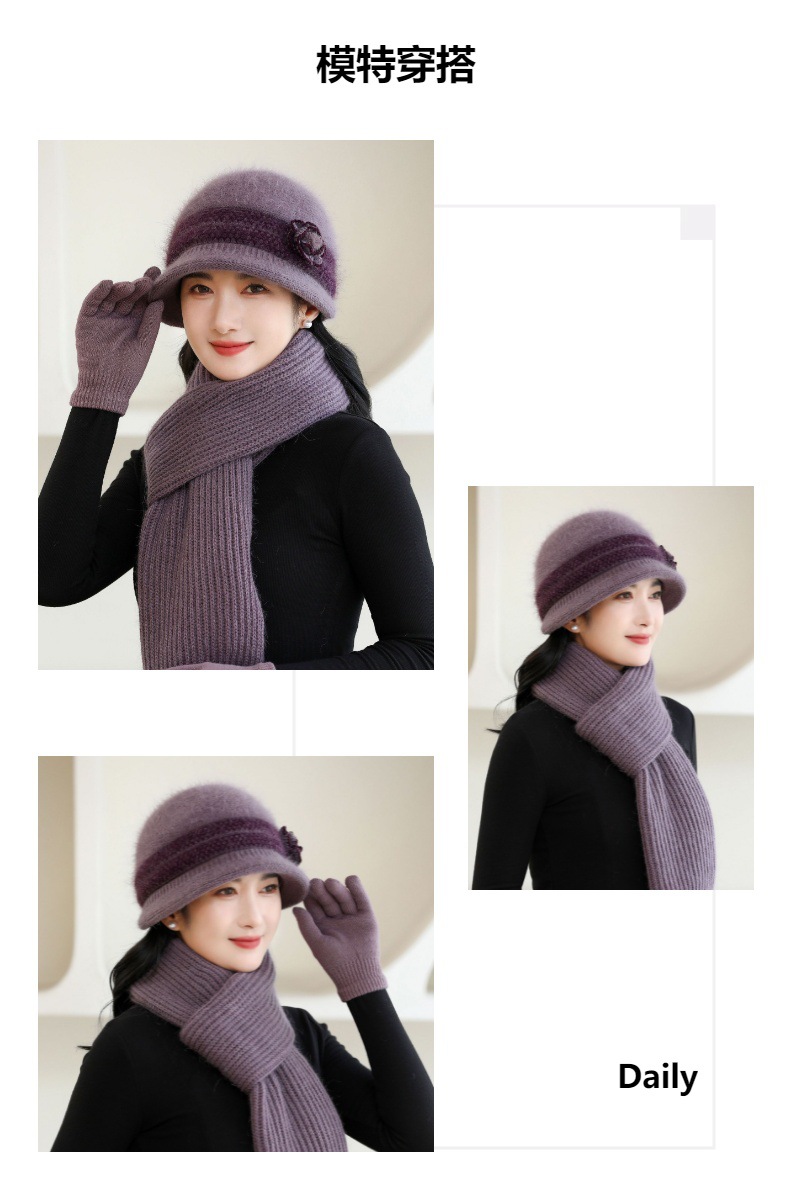 thin cap, hat + long scarf, hat + short scarf