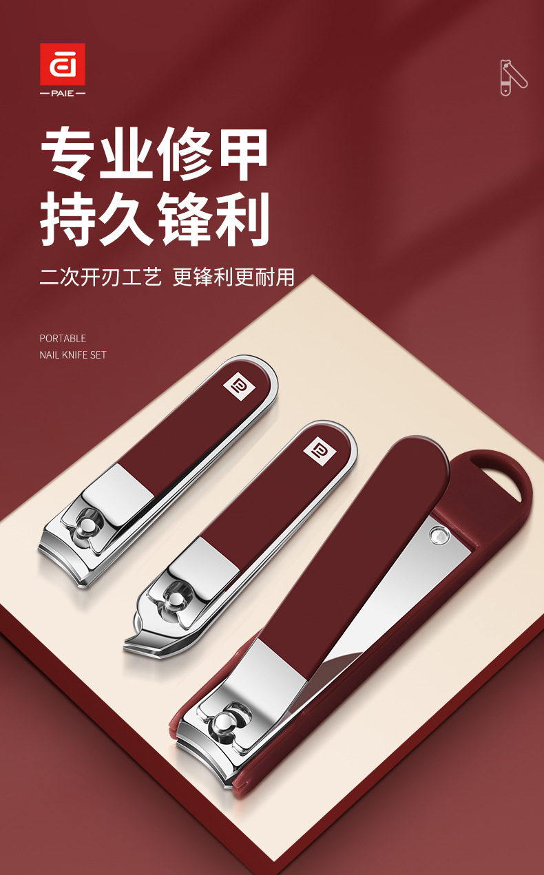 baiyi nail clippers 4-piece set-red plastic box