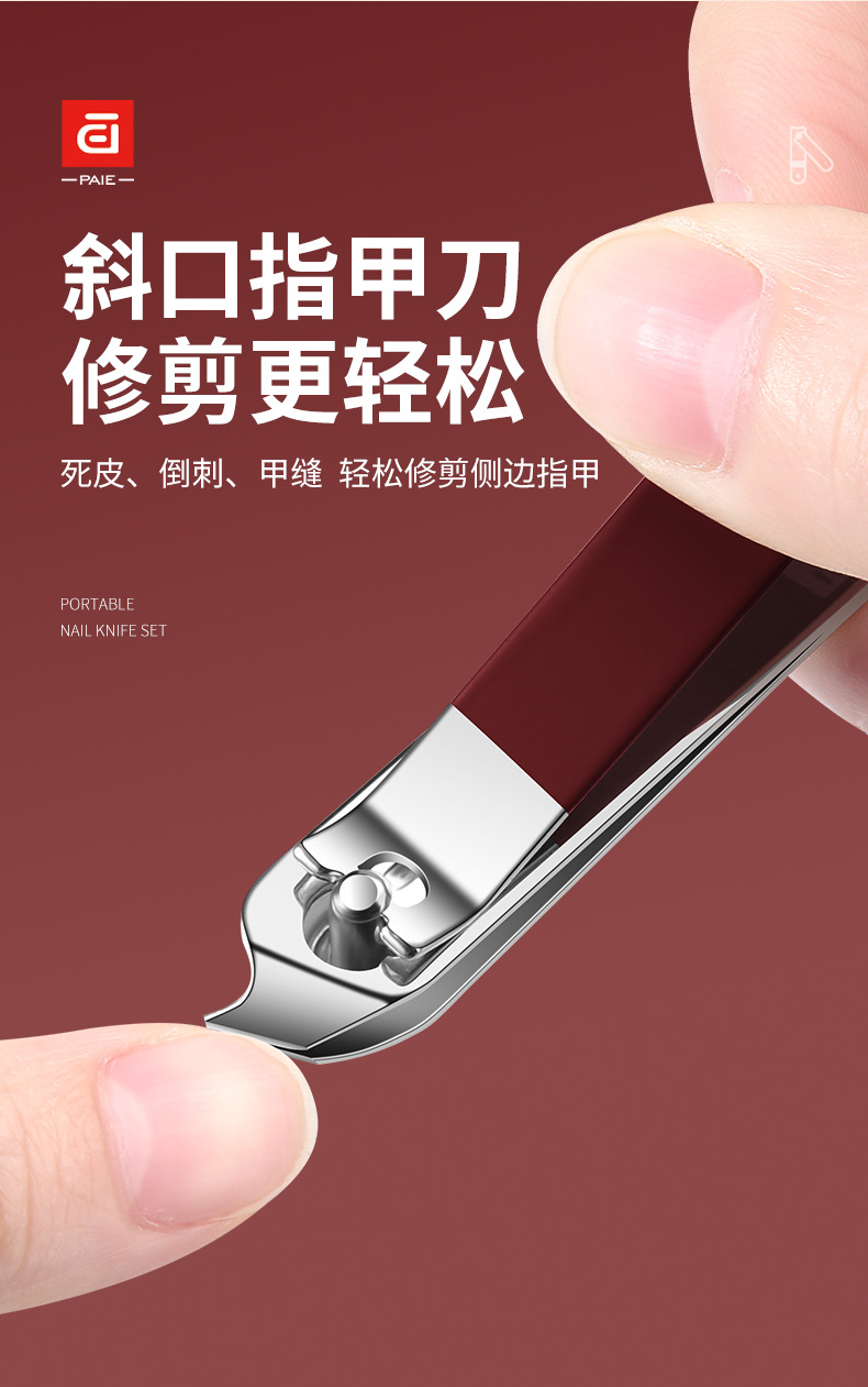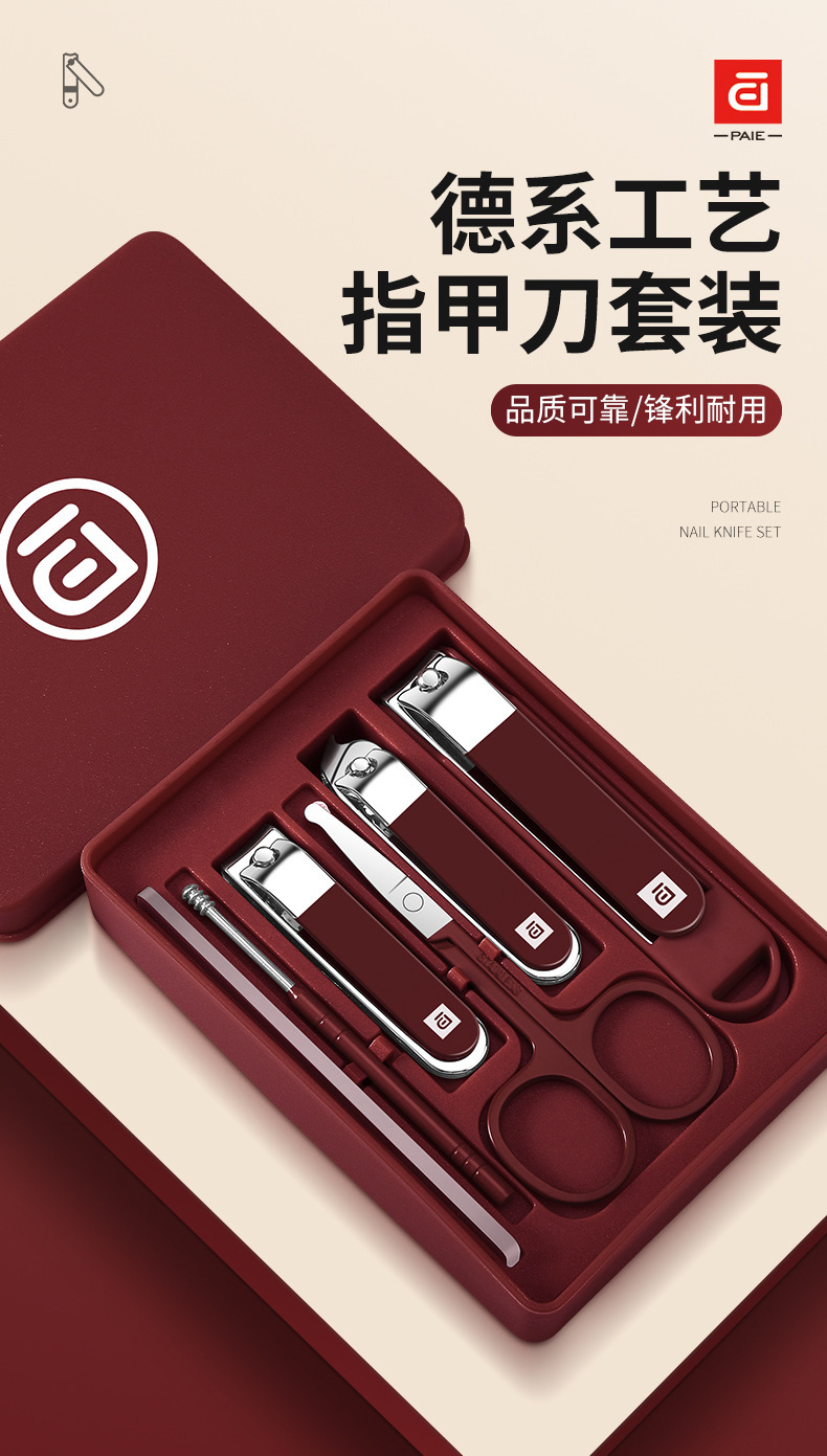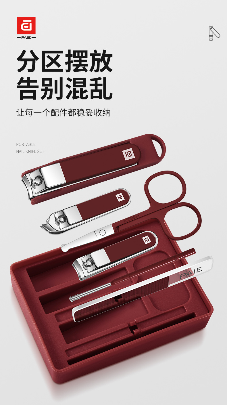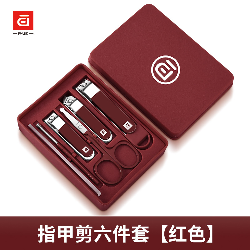 baiqi nail clippers 6-piece set-red plastic box