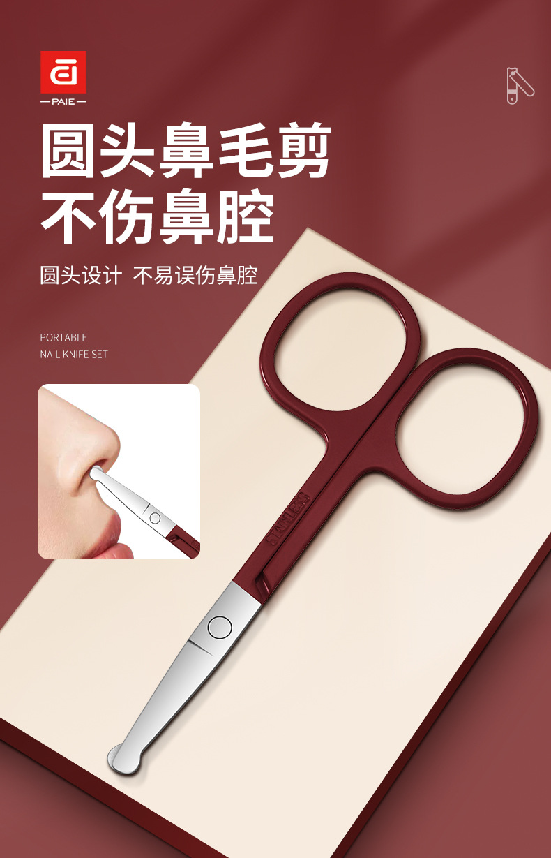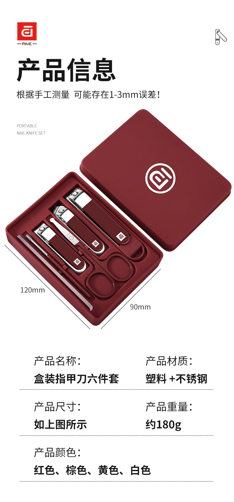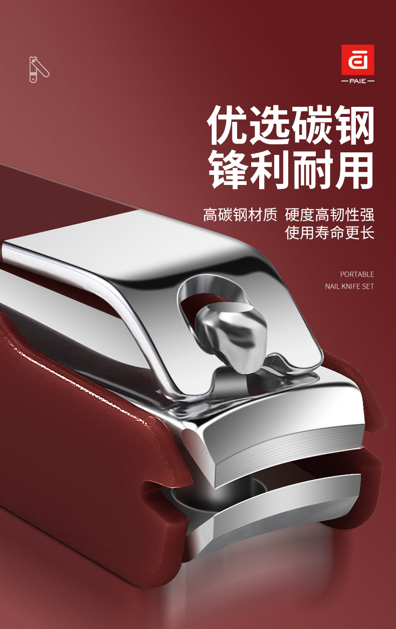 baiqi nail clippers 6-piece set-red plastic box